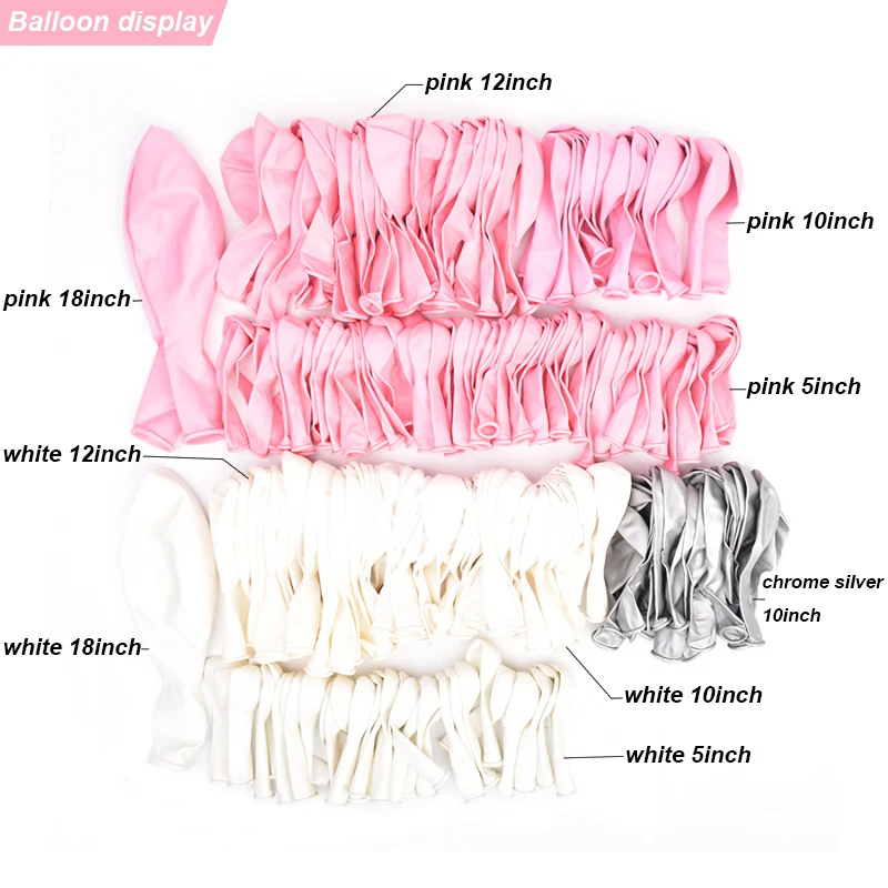 5 дюймовый розовый шар 60 шт.5 дюймов белый шар 30 шт10 дюймов розовый шар 20 шт10 дюймов белый шар 30 шт10 дюймов хром серебристый воздушный шар 20 штук12 дюймов розовый шар 30 шт12 дюймовый белый шар 20 штук18 дюймов розовый шар 2 шт18 дюймов белый шар 1 шт