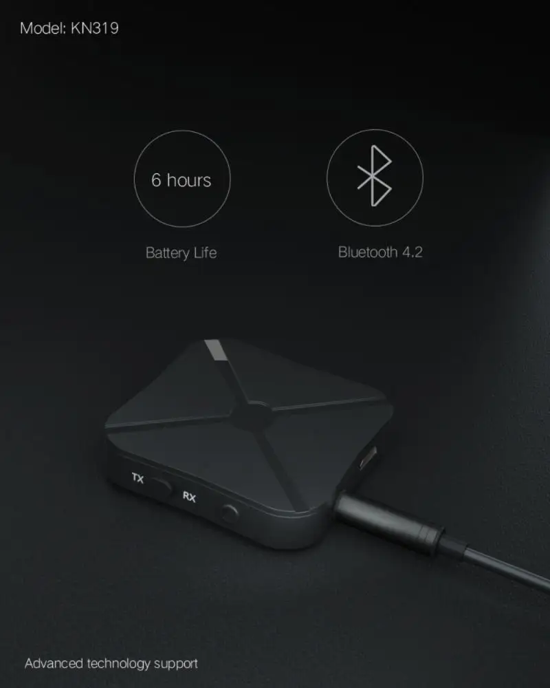 KN319 всего 44 мм (1,73 дюйма) и весит всего 18 г (0,63 унций), но имеет мощные возможности беспроводной потоковой передачи аудио. Вставьте этот передатчик и приемник в рюкзак или сумку для ноутбука и возьмите его на ходу без каких-либо усилий.