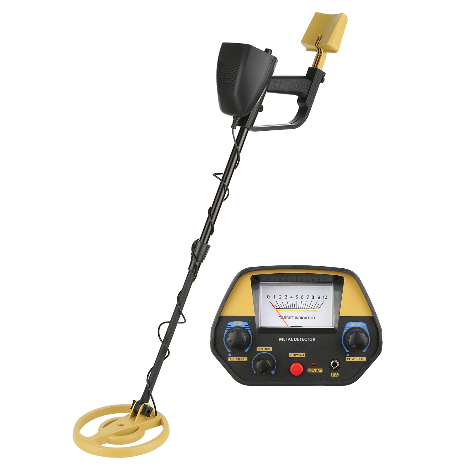 Особенности:3 режима работы: различение, точка и металл, этот детектор имеет три режима работы для универсального и легкого использования.Режим диска: определяет, какие виды металла обнаруживаются.Режим точечной точки: для определения цели. Нажмите эту кнопку, чтобы автоматически снизить чувствительность и определить местоположение цели.Регулируемая чувствительность: управление чувствительностью через поворотную ручку, а также используется в качестве выключателя питания.Регулировка громкости: возможность регулировки уровня громкости динамика и наушников.Водонепроницаемая поисковая катушка: водонепроницаемый шток и катушка позволяют использовать metal explorer под водой, особенно подходит для активного отдыха, на пляже или в ручье. Но следует отметить, что блок управления не является водонепроницаемым.Регулируемая высота металлоискателя: вы можете регулировать длину соединительного стержня для удобства с регулируемой высотой подлокотника, чтобы убедиться, что этот детектор подходит для людей разного роста и возраста.Разъем для наушников: позволяет подключать наушники/наушники (не входят в комплект) с разъемом 3,5 мм и работать без помех.Подходит для поиска и тестирования металлических предметов, золотых и серебряных украшений, монет, реликвий и т. д. будь вы Начинающий Охотник за сокровищами или опытный любитель металла, вы можете легко им воспользоваться.Характеристики:Материал: АБС-пластик + алюминийРежим обнаружения: цельнометаллический, дискриминационный, точечныйОбнаружение объектов: металл, монеты, реликвии, ювелирные изделия, золото, сереброУправление: выключатель питанияЧувствительность: 0-10 регулируемаяОбъем: РегулируемыйИсточник питания: батарея 2*9 в 6F22 (не входит в комплект)Разъем для наушников: 3,5 ммРегулируемая высота детектора: 755-1020 мм/29,72-40,16 дюймаВес изделия: 928 г/фунтаВес посылка: 1472 г/фунтаПосылка: 53*22*11,5 см/20,87*8,66 * 4.53inУпаковочный лист:1 * металлоискатель (необходимо собрать)1 * Руководство пользователя (на английском языке)