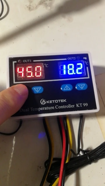 Контроль нагрева или охлаждения. Красный и синий светодиодный дисплей.