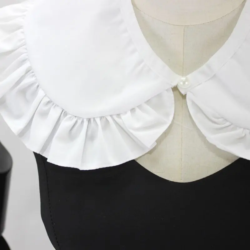 Японская Милая Белая кукла для женщин и девочек, ложный воротник, плиссированные оборки, Лоскутная отделка, съемная половина рубашки, воротник-шаль
