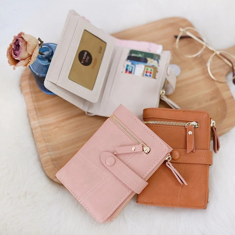Короткий кошелек для женщин, маленький узкий бумажник на застежке с кармашком для мелочи, роскошные дизайнерские брендовые кредитницы