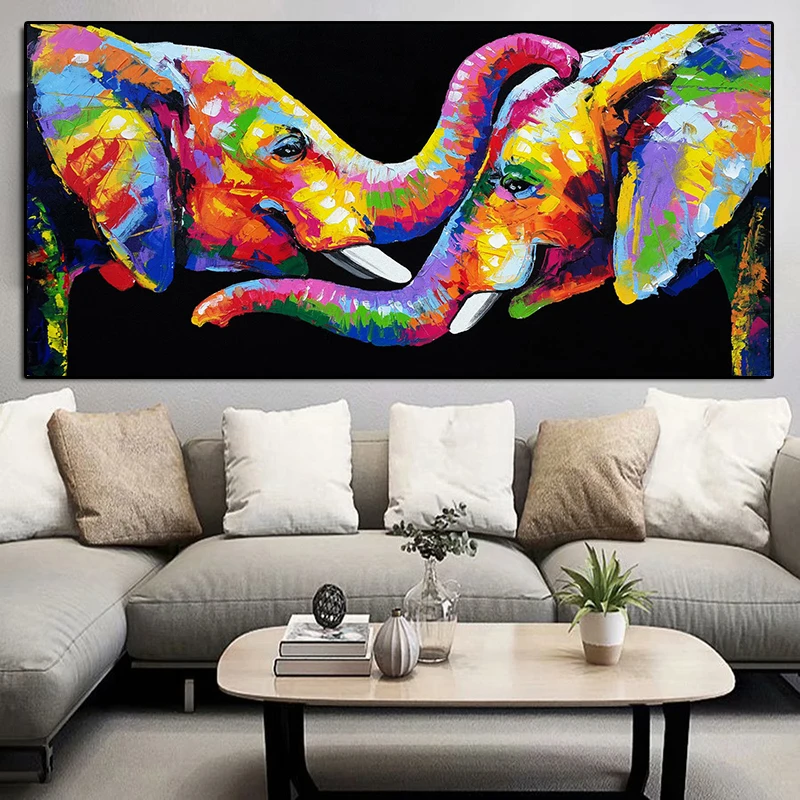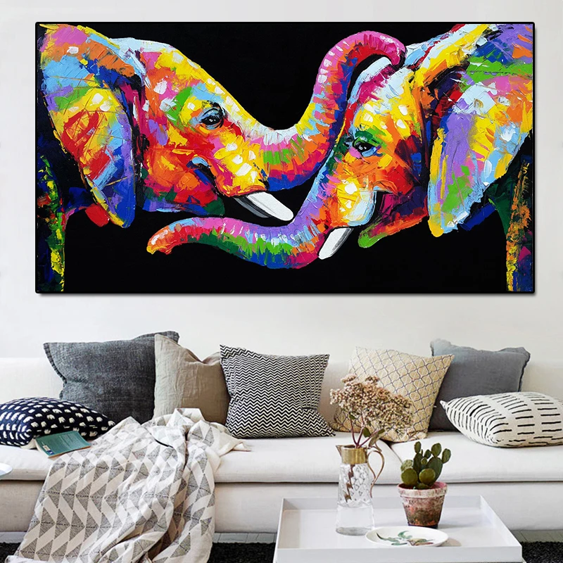 Красочный холст Картины абстрактные Животные настенные художественные плакаты и принты пара слонов фотографии для Гостиная украшения