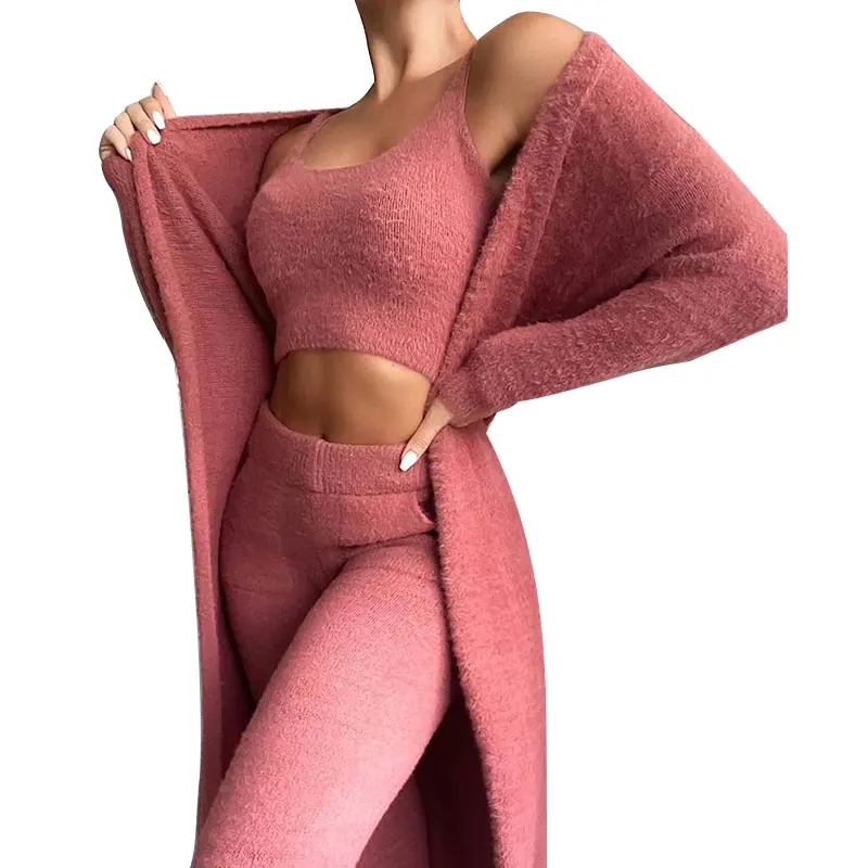 Ladies Тедди; Одежда для отдыха; Одежда Комплект 3 предмета флисовый Спортивный Костюм Пижама кардиган