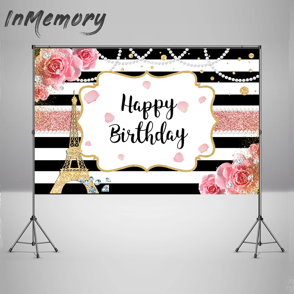Фон для фотосъемки с изображением Парижа, Эйфелевой башни, розовых цветов