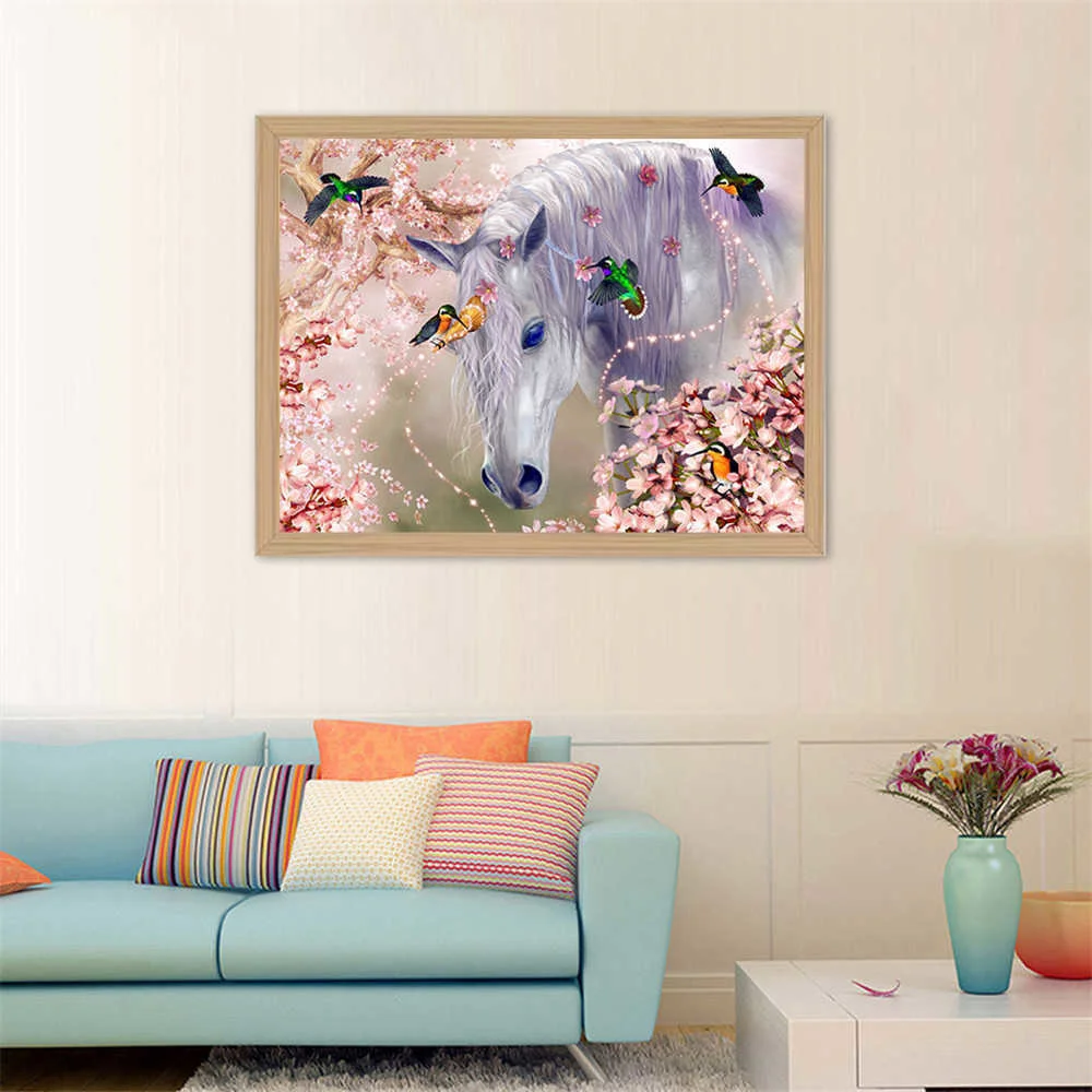 Алмазная живопись HUACAN, животное, лошадь, домашнее искусство, алмазная вышивка, колибри, мозаика, цветок вишни, вышивка крестиком, подарок