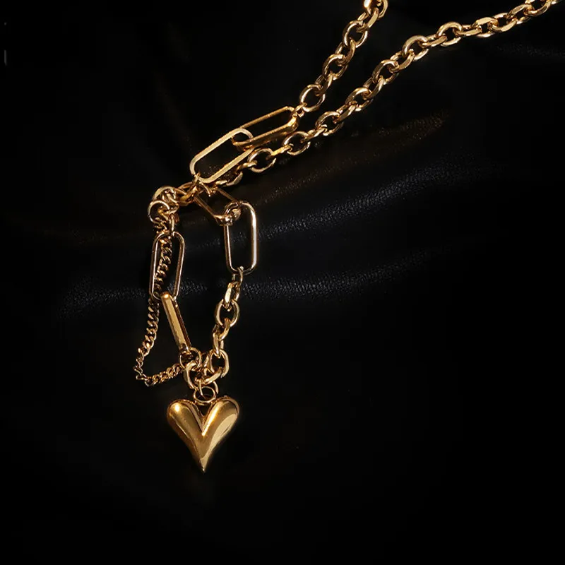Колье женское из титановой стали, с сердечком, массивное, золотого цвета