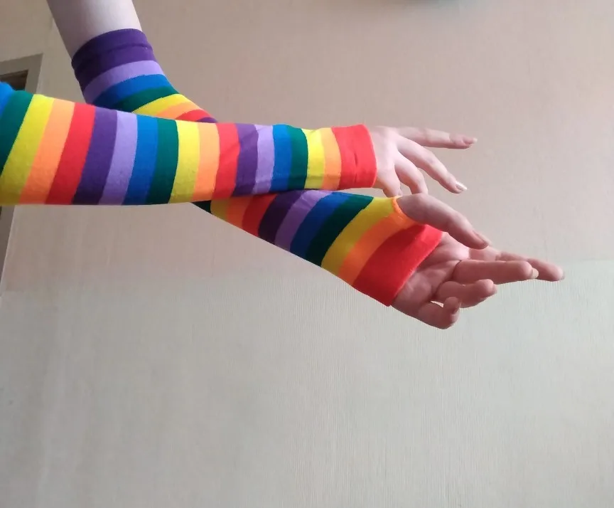Описание:OOTDTYОсобенности:100% новый и высокое качествоМодный и классический дизайн в радужную полоску сделает вас модным.Длина локтя, с отверстием для большого пальца, перчатки без пальцев обеспечивают свободное и легкое движение пальцев.Подойдет для костюмированной вечеринки, на Хэллоуин, вечерние, занятиях спортом, занятий спортом, в школу и для повседневной носки.Изготовлен из высококачественного полиэстера, мягкий, эластичный, прочный и очень удобный.Идеально используется в качестве модного аксессуара с вашими платьями, юбками, шортами, джинсами.Это идеальный подарок на Рождество, день рождения для ваших друзей, любимых, семьи.Только 1 пара перчаток, другие демонстрационные аксессуары на рисунке не включены!Спецификация:Материал: полиэстерЦвет: РадужныйРазмер: один размерДлина: 35 смКоличество: 1 пара (2 шт.)Теплая подсказка:1. Азиатский размер на 1 или 2 размера меньше, чем европейский и американский.2. Обратите внимание, что при низкой температуре стирать, не отбеливать и не помещать под ПЫЛАЮЩЕЕ солнце в течение довольно длительного времени.3. В связи с использованием разных методов измерения, возможно отклонение на 1-3 см в отношении товаров, пожалуйста, убедитесь, что это нормально для вас перед заказом.4. Из-за различных мониторов и освещения, изображение может не отражать фактический цвет товара, действительно спасибо за Ваше понимание!