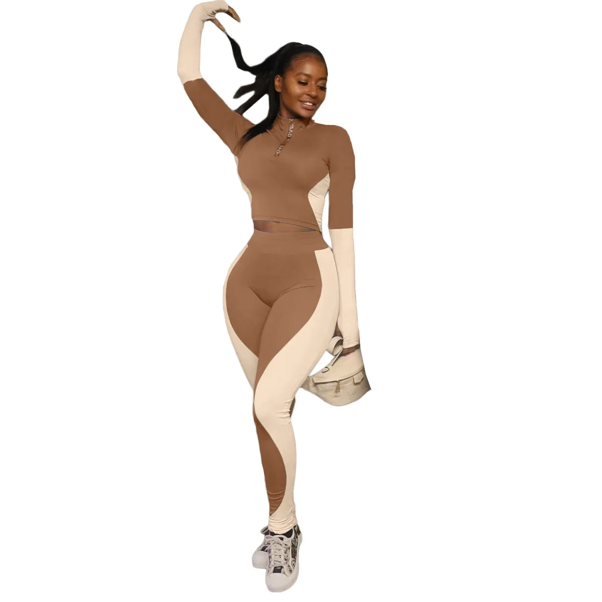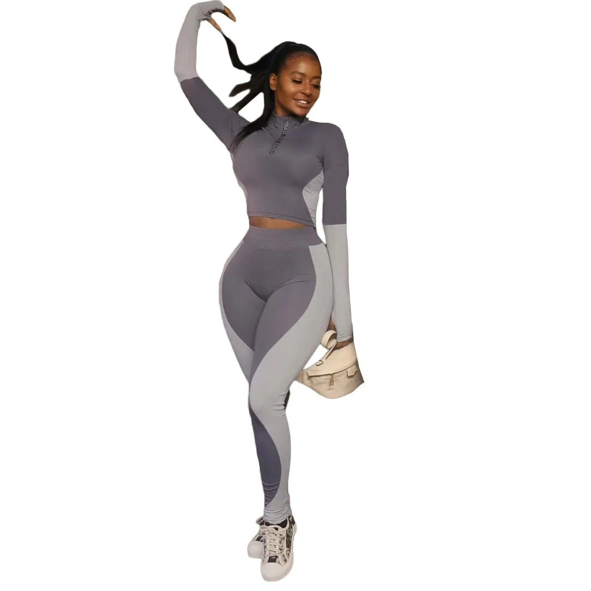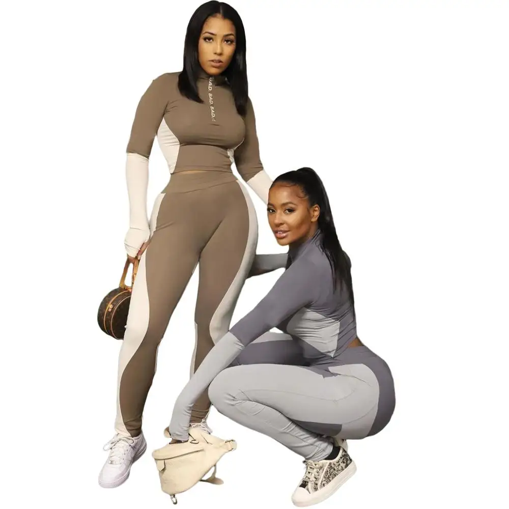 Повседневный Спортивный костюм в стиле пэчворк, женский спортивный костюм для бега на осень и зиму, укороченный топ для фитнеса + леггинсы, облегающий комплект из двух предметов, наряды 3XL