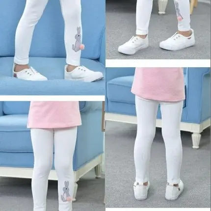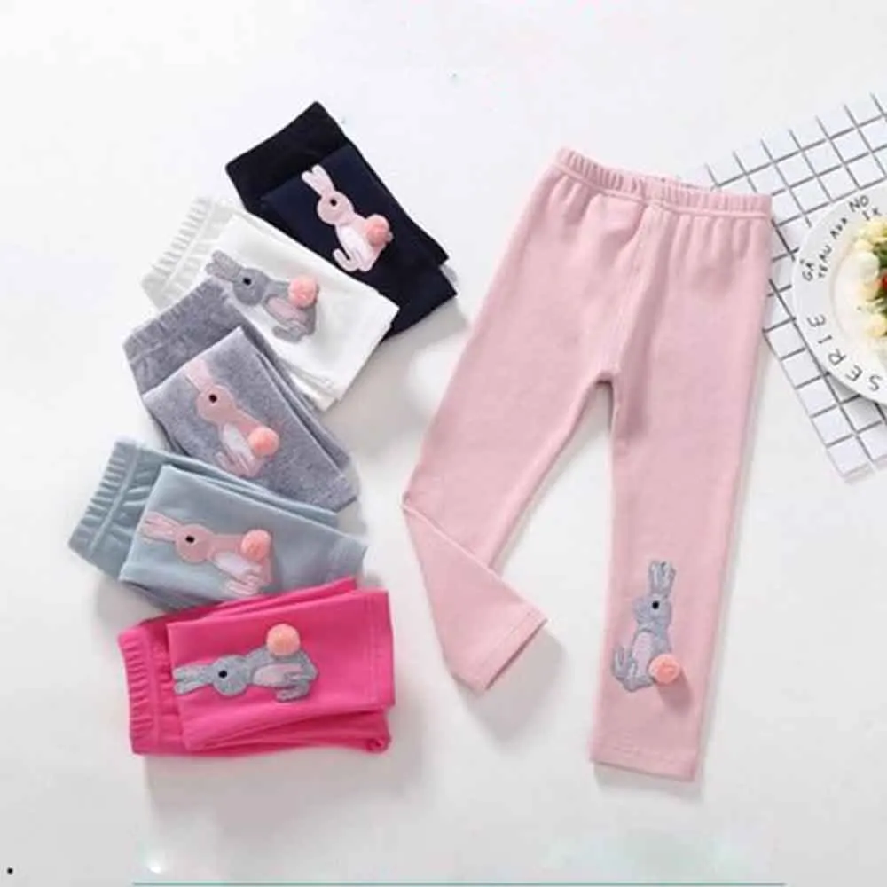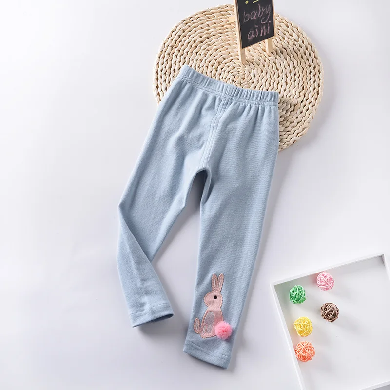 Брюки для девочек, детские леггинсы, Осень-зима 2021, с вышивкой в виде кролика, украшенные мячиками, теплые женские брюки в Корейском стиле