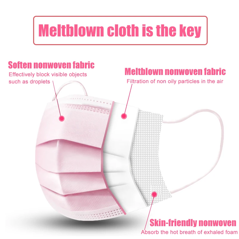 Одноразовая розовая маска Анти-пыль маска для лица 》 нетканый 3 Слои слоев фильтр эластичный ушной дышащая Безопасность Mascarillas Desechables