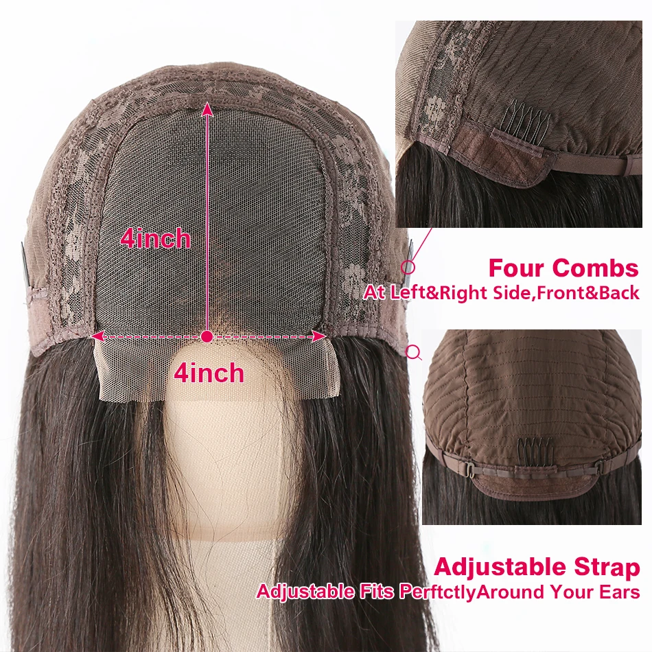 Парики из натуральных волос на сетке 4x4 для женщин, прямой парик с...