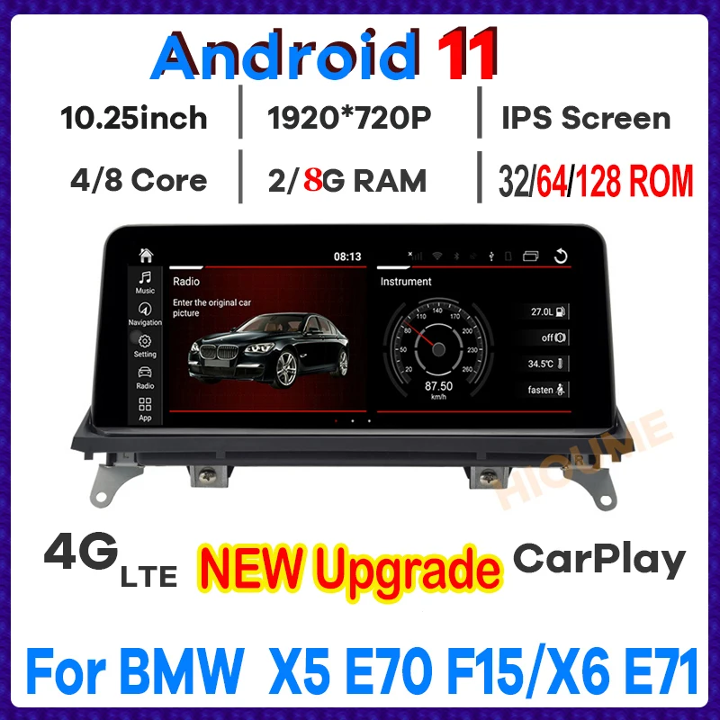Автомобильный мультимедийный плеер 10,25 дюйма, 8 ядер, 8 + 128G, Android 11, gps-навигация, радио, стерео навигатор для BMW X5 E70 F15 X6 E71 F16 2007-2017