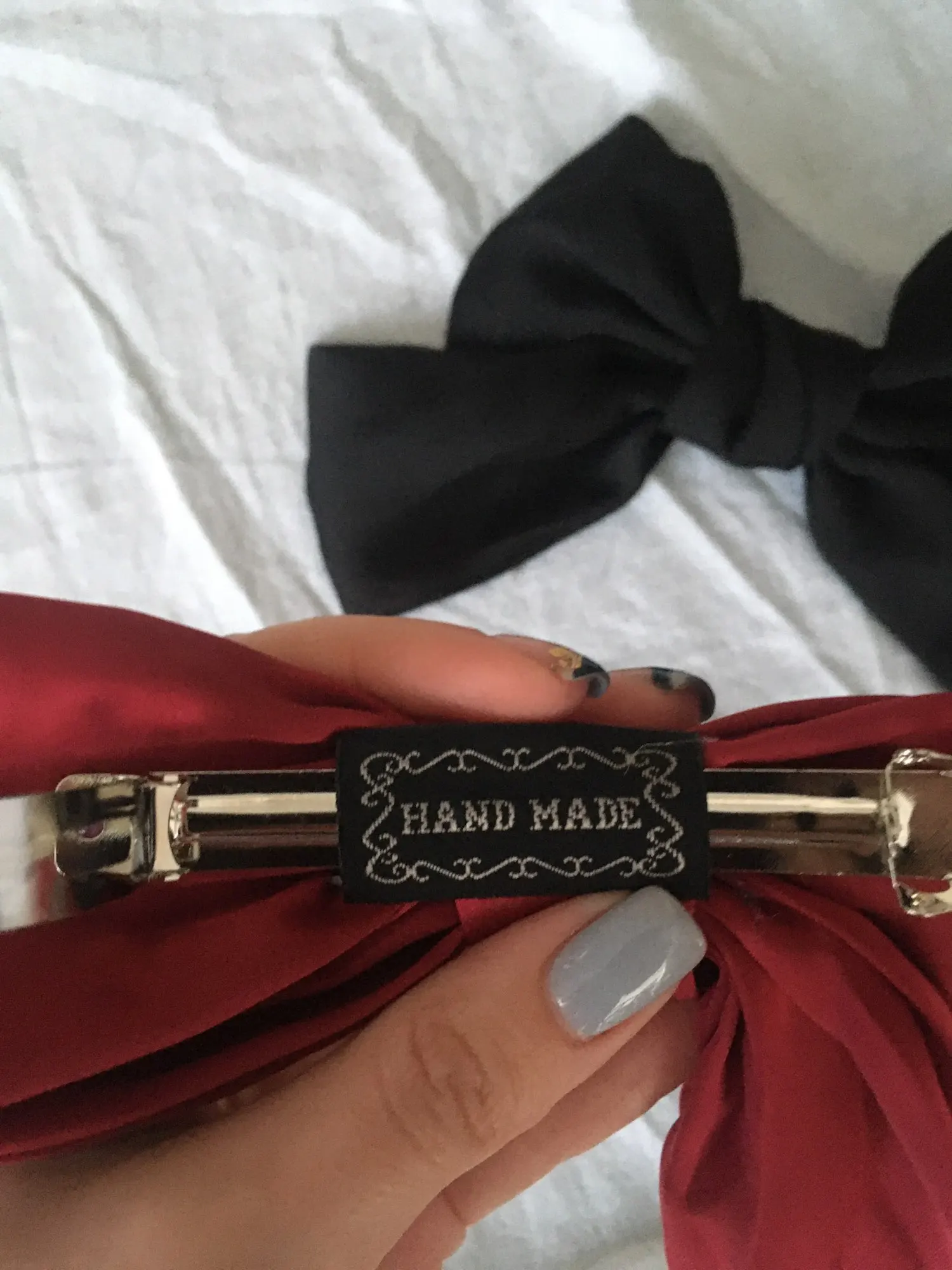 Восхитительные заколки! Большие, крепкие, аккуратные. Ленты плотные, пришли слегка мятые, но за ночь сами отлежались и гладить не пришлось. Даже мои супер густые волосы держат отлично. Возьму ещё а других цветах. И приехали очень быстро.