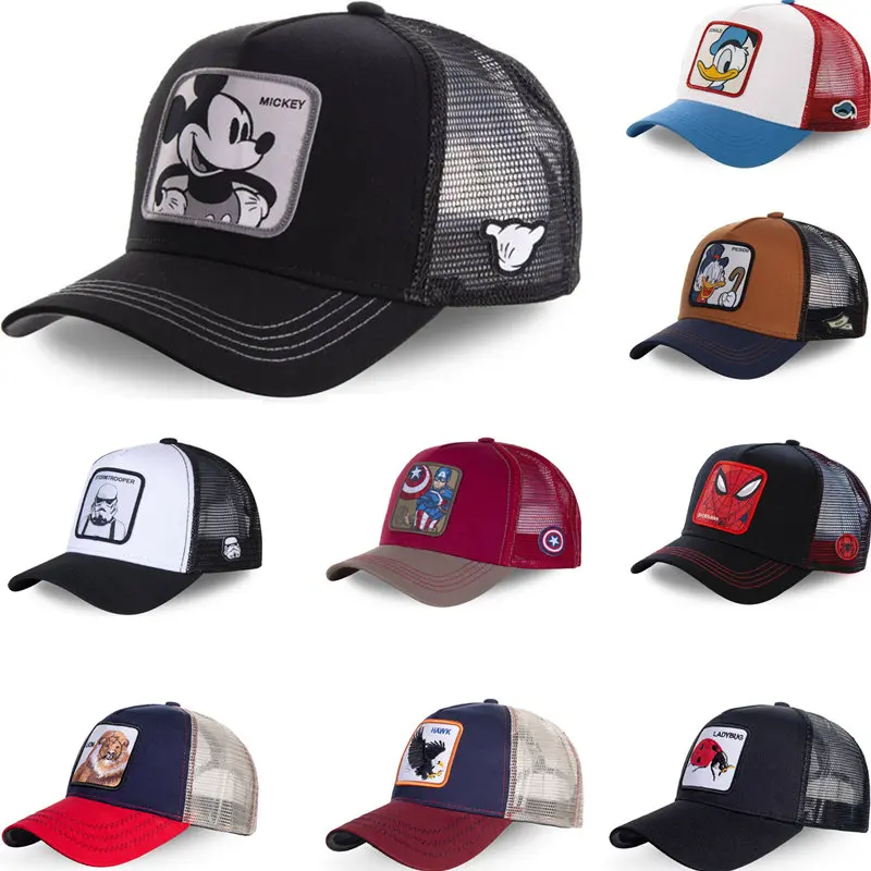 Бейсболка для мужчин и женщин, брендовая бейсболка с рисунком аниме, супергероев мультфильма Микки, в стиле хип-хоп, с сеточкой, Кепка-тракер