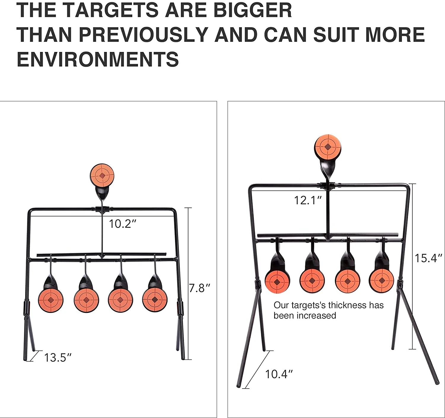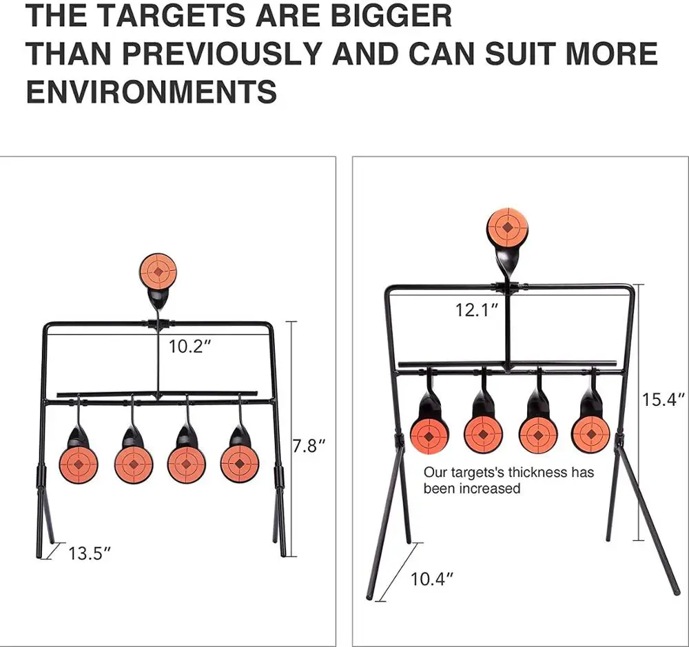 Особенности продукта: Rimfire-16,8 ”W x 22,5” H x 1,8 ”D Простота в использовании: 2,5” съемные точки включены и цели автоматически ориентируются после каждого снимка Надежный: ноги вставляются в землю, а другой набор прикрепляет землю для дополнительной стабильности Прочный: Изготовлен из сверхпрочной стали, чтобы выдерживать любую погоду и съемки Удобно: компактный, портативный дизайн облегчает транспортировку и установку Универсальность: поставляется в моделях Airgun, Rimfire и Handgun Самонастраиваемый целевой набор. Изготовлен из прочной сверхпрочной стали. Поставляется с 10 наклейки мишень, легко настроить-нет необходимости собирать. Подходит для тренировок по стрельбе, как в помещении, так и на улице. Цели сброса легко переносятся и создают интерактивный опыт съемки, что делает наживку и цель веселиться. Размер: 26x20x34.5см Посылка товара: 1 шт сброс цели + 10 наклейки мишень