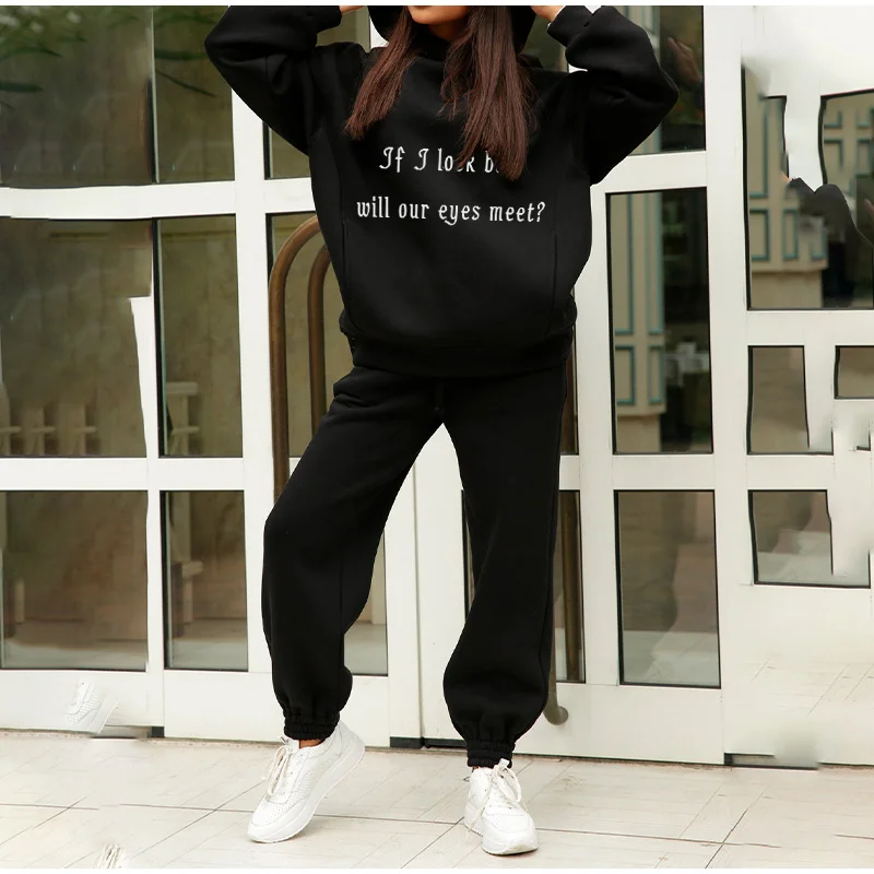 Style2Hooded Sweatshirts And Long Pants Female Suits