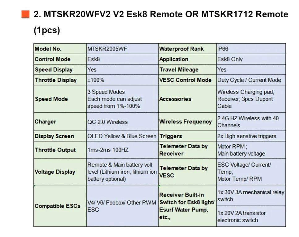 Гребень 1: 2 шт. MTVESC100A + 1 шт. кабель Canbus MTSKC120 + 1 шт. пульт дистанционного управления MTSKR20WFV2