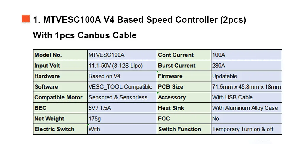 Model No.2xMTVESC100A+Canbus cable+Remote