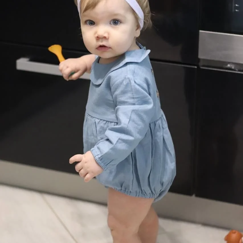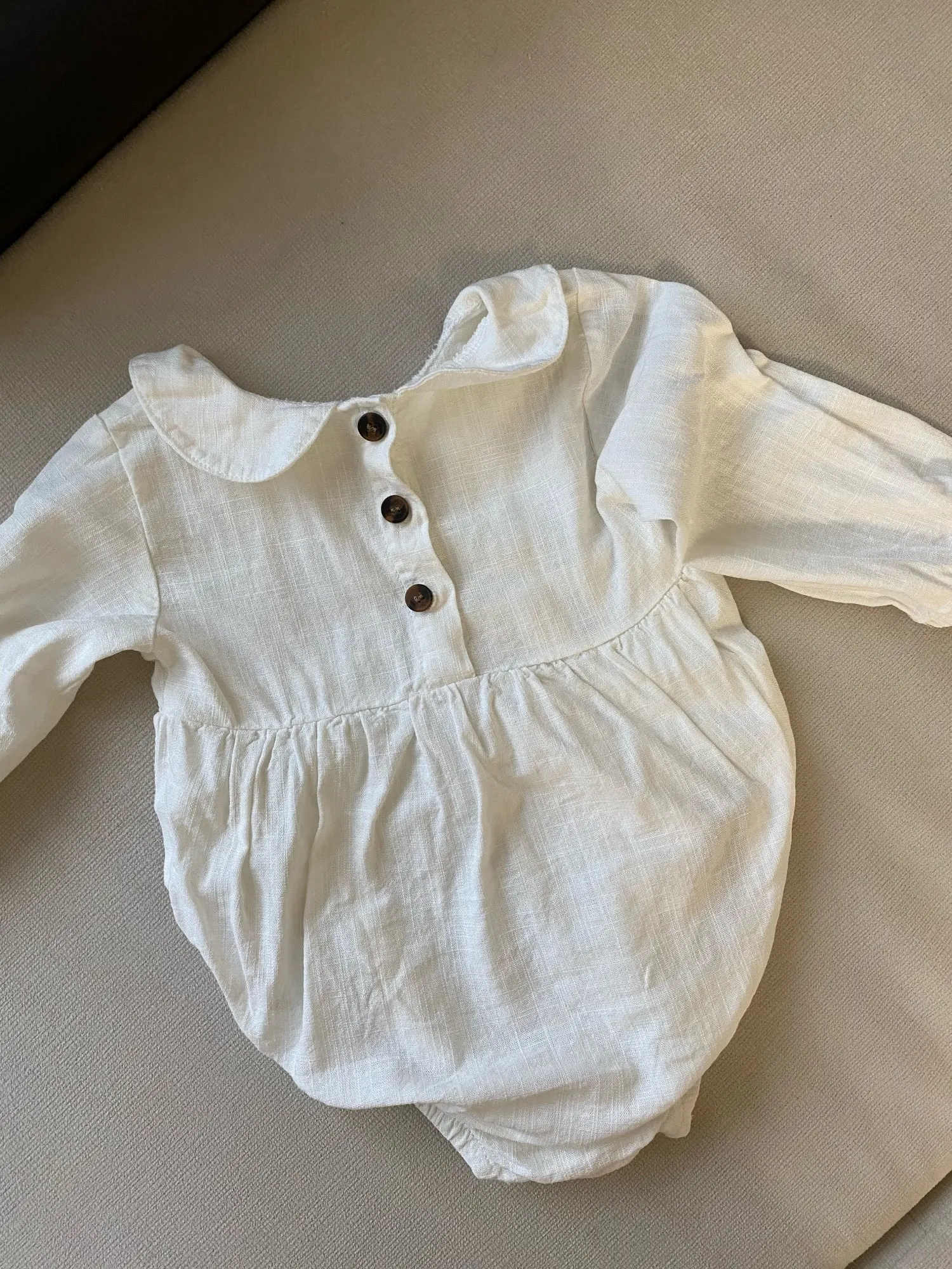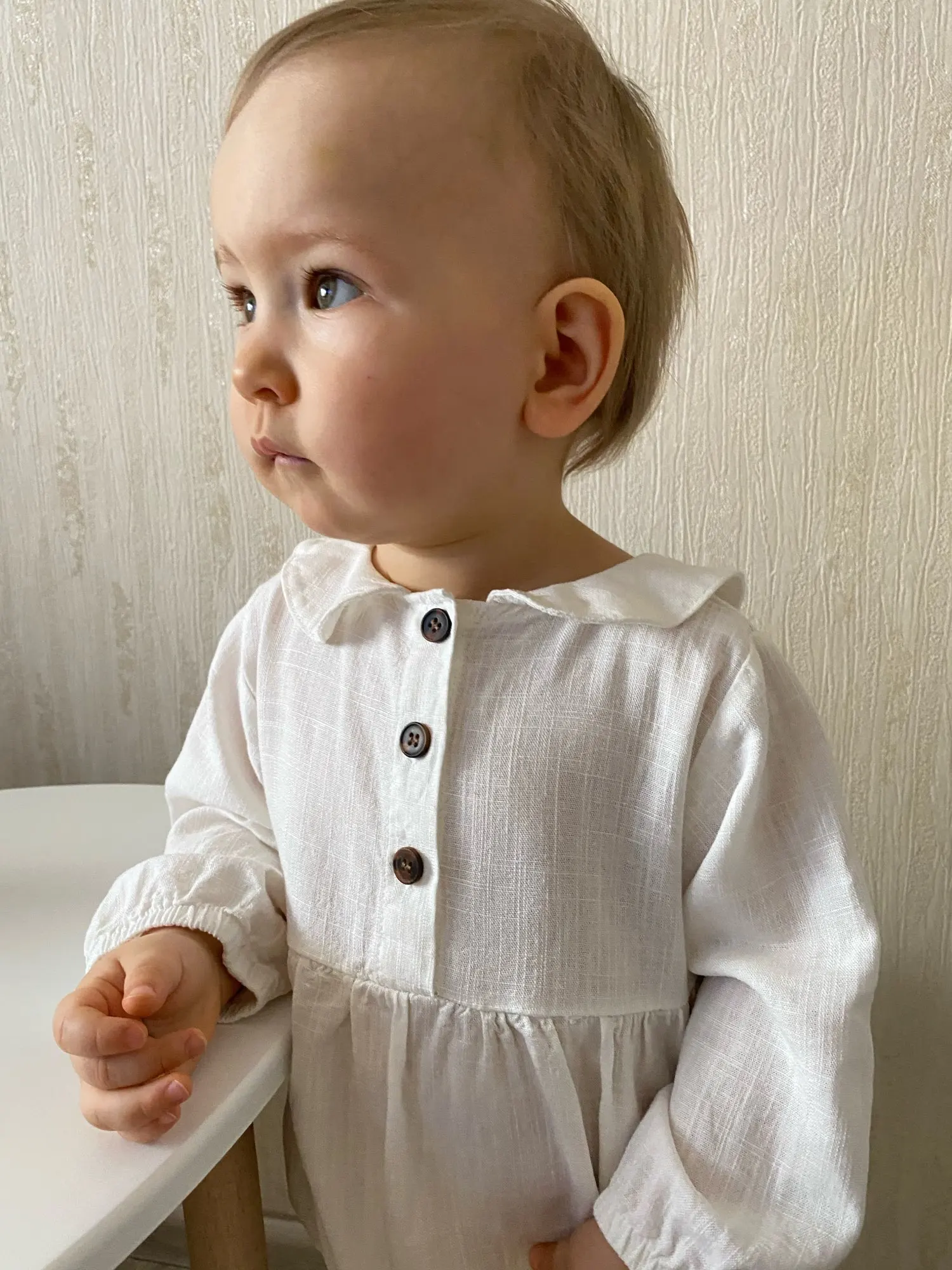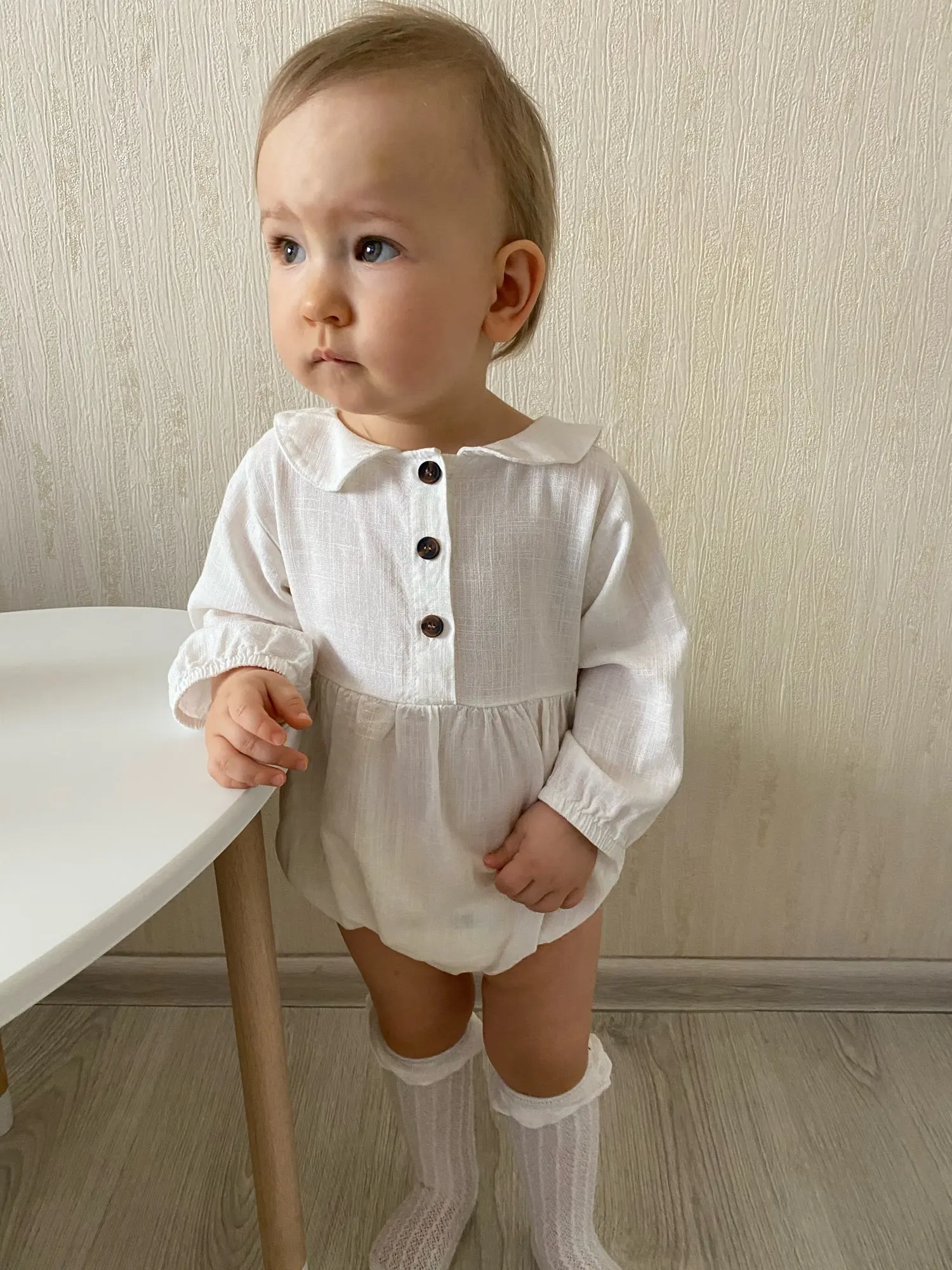 Комбинезон Melario для девочек, хлопковый, льняной, однотонный, с длинным рукавом