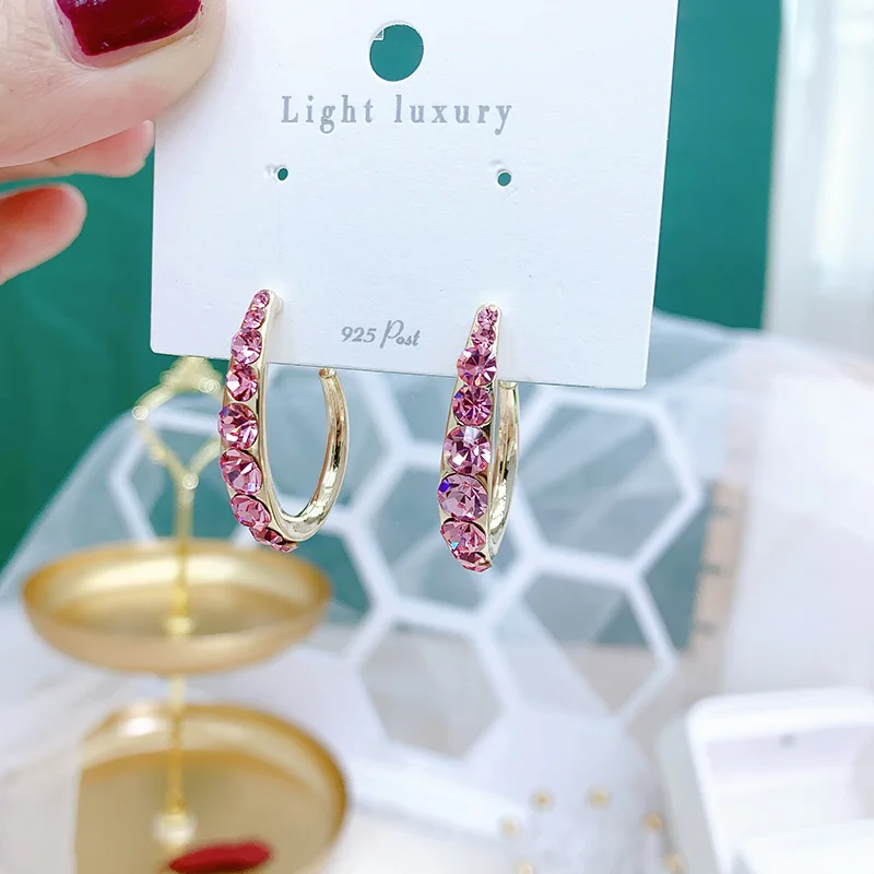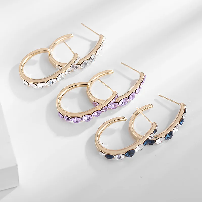 Женские серьги FXLRY в форме полукруга, с инкрустированными кристаллами из меди, ювелирные изделия для женщин, фиолетовые серьги