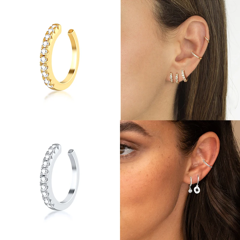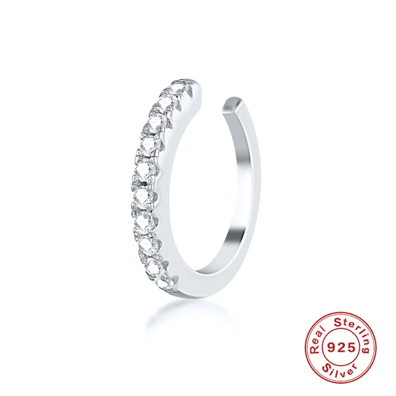 ROXI простой C Форма с кристаллами циркона поддельный пирсинг клип серьги для женщин, ювелирные изделия для девушек, серьги 925 стерлингового серебра серьги-кольца