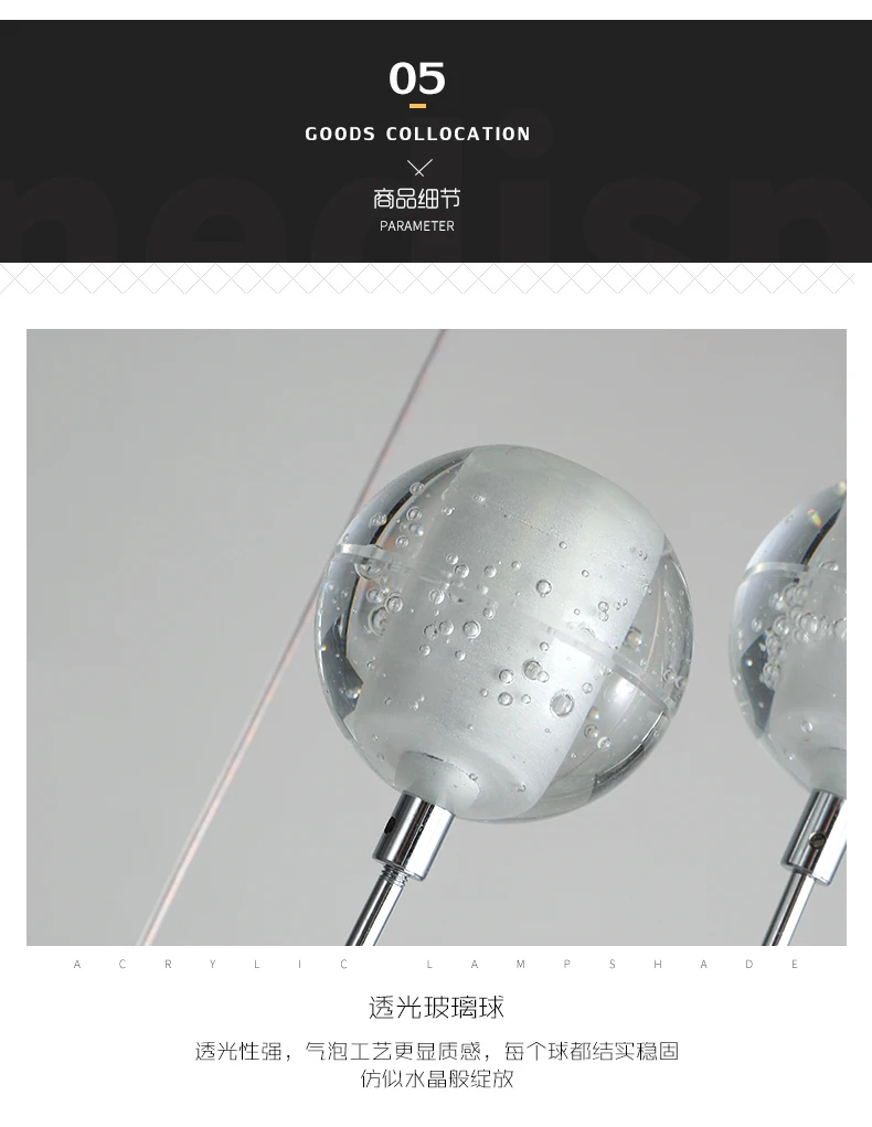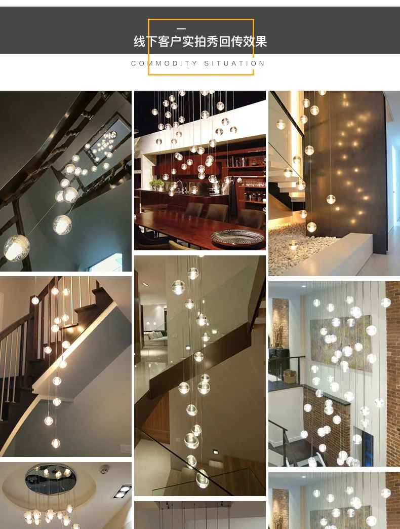 Материал: фурнитура, стеклянный шарСветильник источник света: светодиодныйРазмер: круглый участок: 5 головок диаметром 20 см и 120 см высота линии9 головок диаметр шасси 30 см, высота лески 120 см12-голова в том числе с диаметр мембранного указателся 40 см и трапециевидной формы высота 150 см15 головок шасси диаметром 50 см и высотой лески 200 см20-голова шасси с диаметром 60 см и трапециевидной формы Высота 250 см25-голова шасси имеет диаметр 60 см и трапециевидной формы Высота 300 смБольшие размеры 35-голова шасси обладает диаметром 70 см и трапециевидной формы высота 350 см(Можно регулировать высоту линии подвешивания)Прямоугольное шасси:12 головок, 65 в ширину, 20 см в длину, 150 см в высоту16-голова шасси составляет 80 см в длину, 20 см в ширину и 200 см в высоту20-головное шасси длиной 100 см, шириной 20 см и высотой 250 смЦвет: прозрачныйНапряжение: от 90 до 260 вПрименение: гостиная, спальня, зал, лобби отеля, лестницы, коридор, проход, вилла и т. д. шоу реальных покупателей
