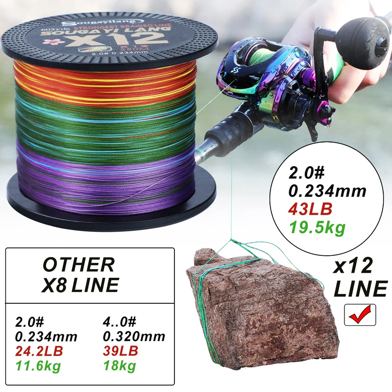 Рыболовная леска, 12 нитей, устойчивая к истиранию