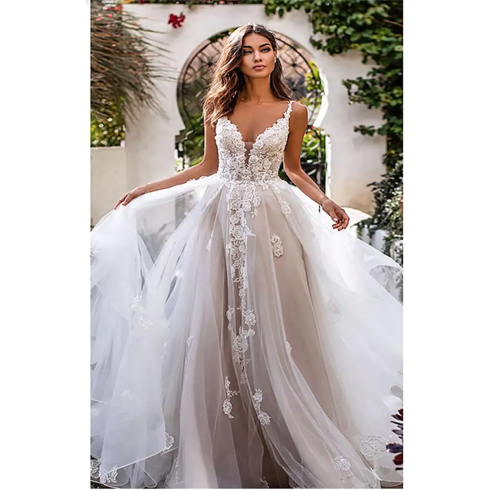Сексуальные пляжные свадебные платья с глубоким V-образным вырезом,...