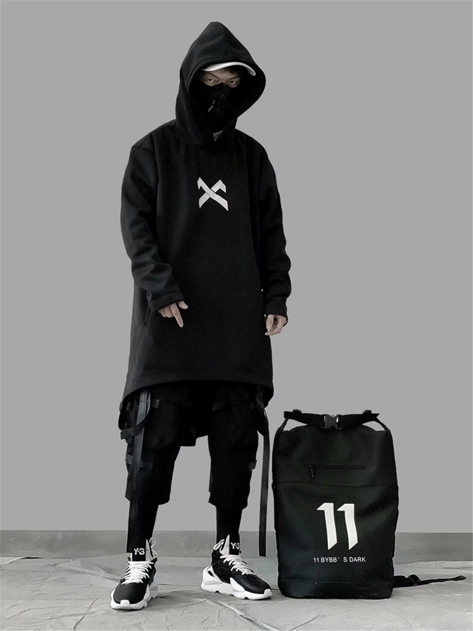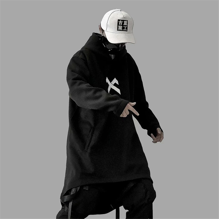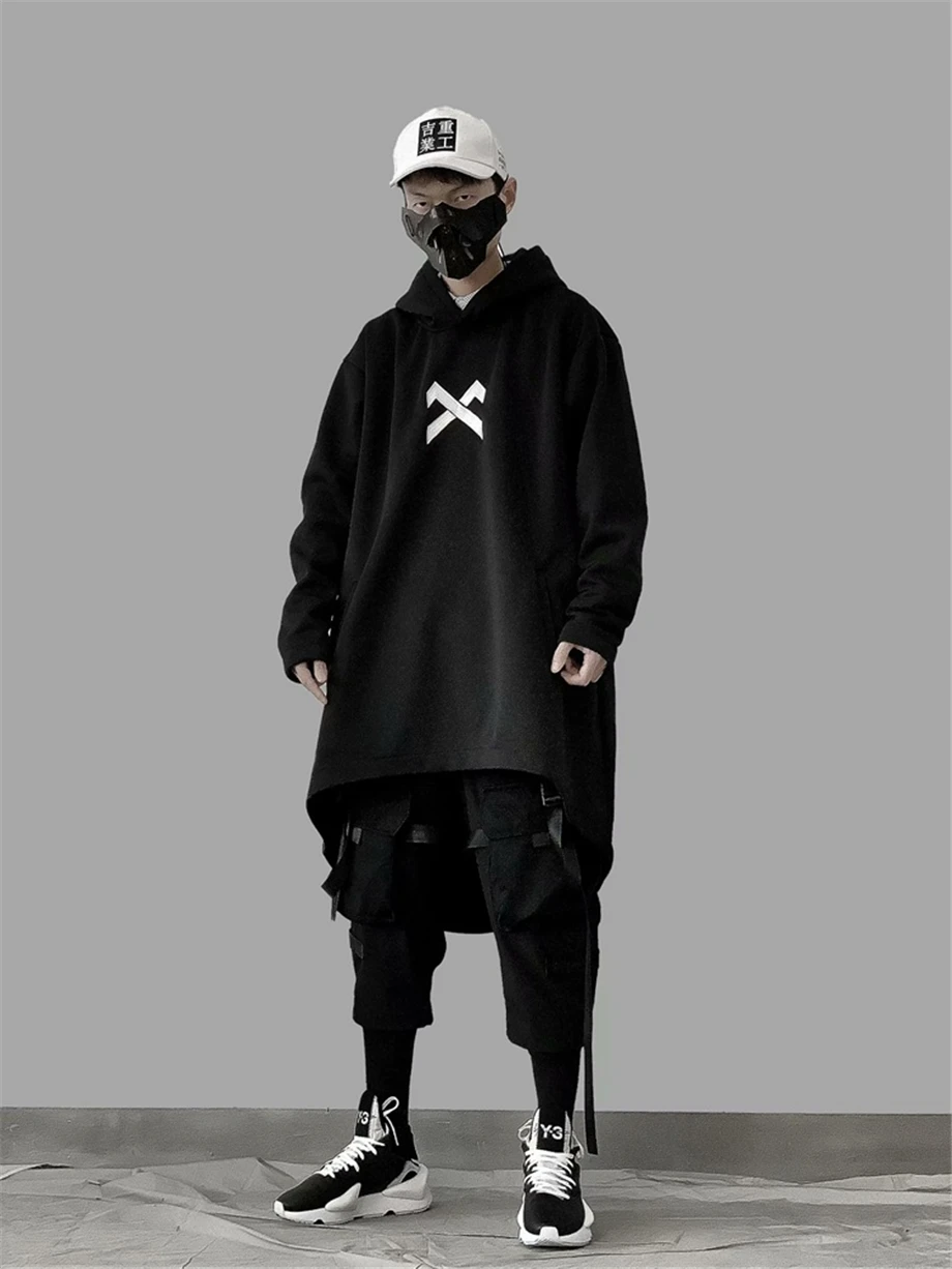 Худи мужское в японском стиле, уличная одежда в стиле оверсайз, длинный Тренч, плащ с капюшоном, готика, Харадзюку, черная уличная одежда
