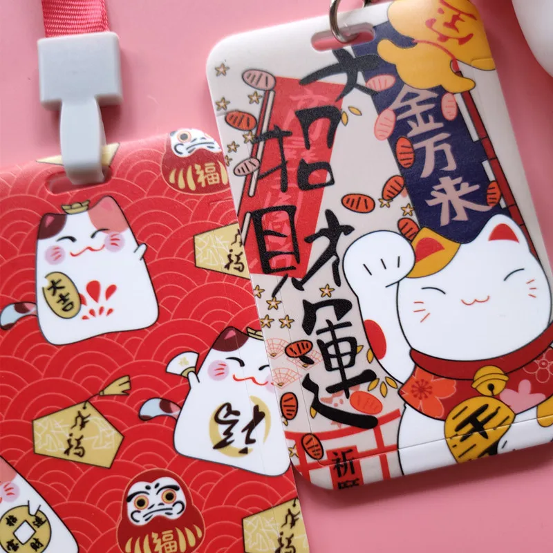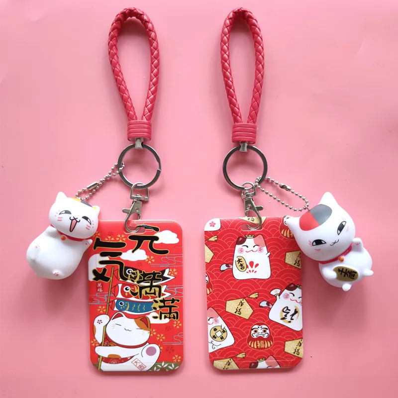 Happy Fortune Cat, Женский ID кредитный банк, держатель для карт, студенческий автобус, прозрачный чехол для карт, ремешок для девушки, для посещения двери, значок для удостоверения личности, карта