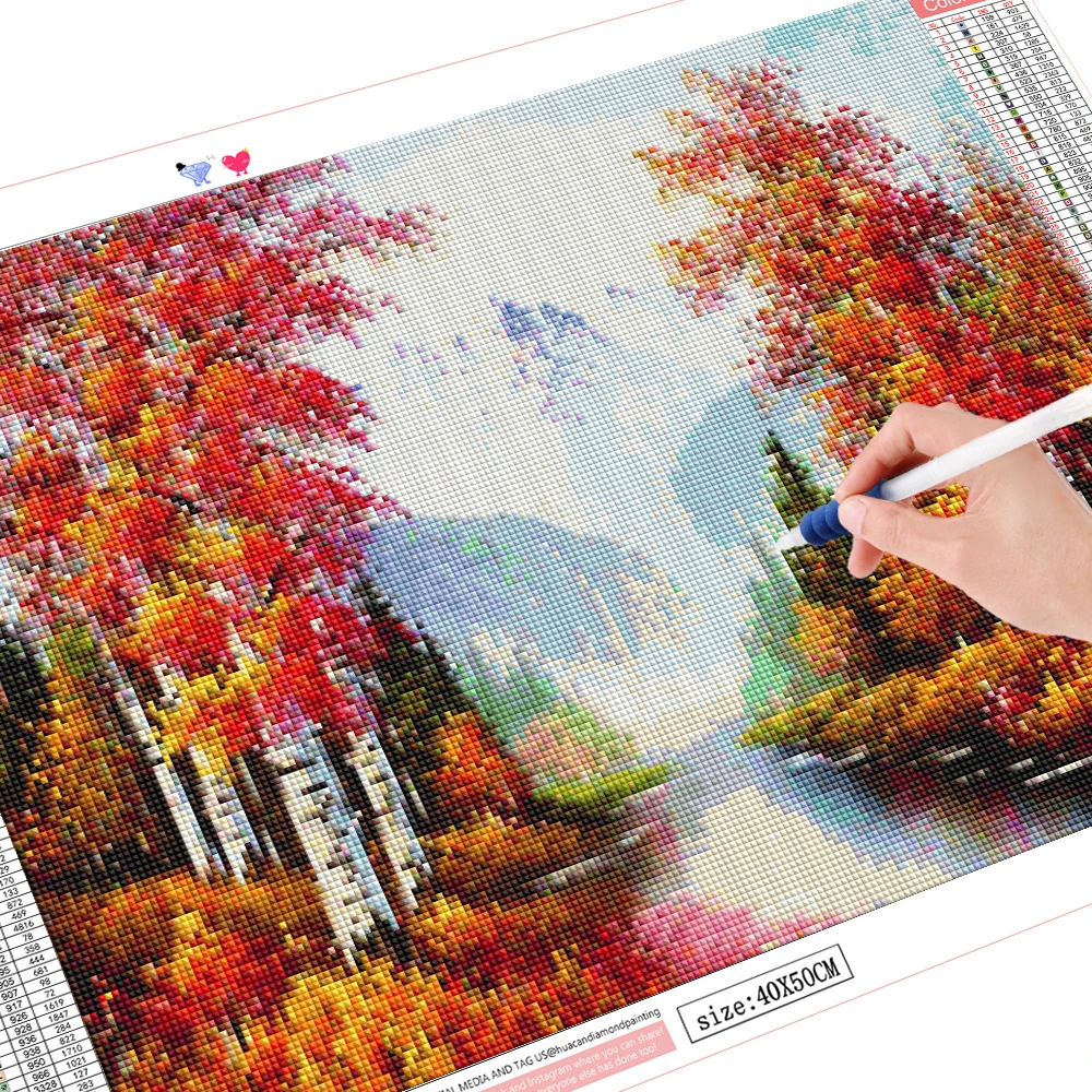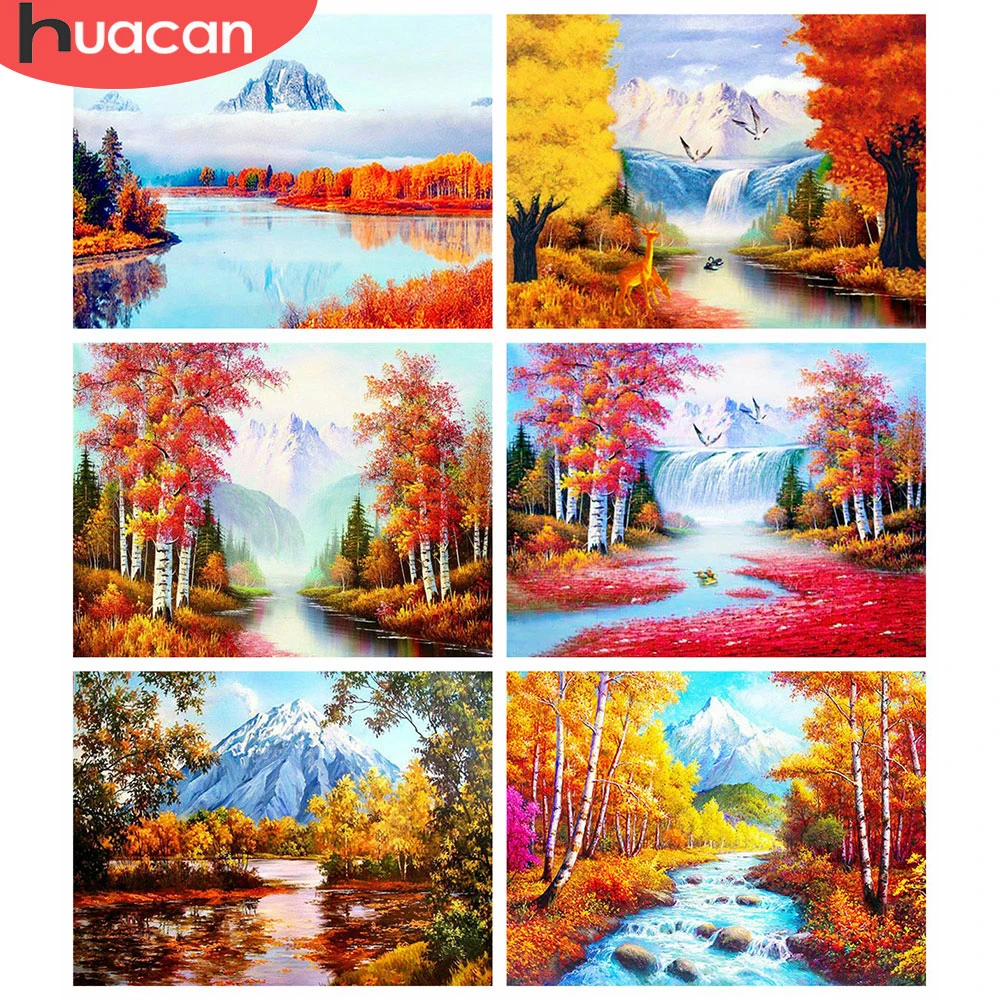 Набор для алмазной живописи HUACAN, алмазная 5D Вышивка крестиком, пейзаж, мозаика, натуральный холст, украшение для дома на осень