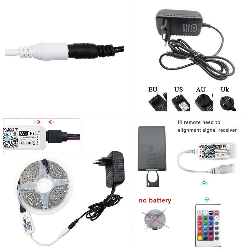 Светодиодная лента RGB 5050 2835 5 м 10 м 15 м с Wi-Fi управлением, 12 В постоянного тока, адаптер для украшения комнаты, совместимый с Alexa Google, освещение для спальни