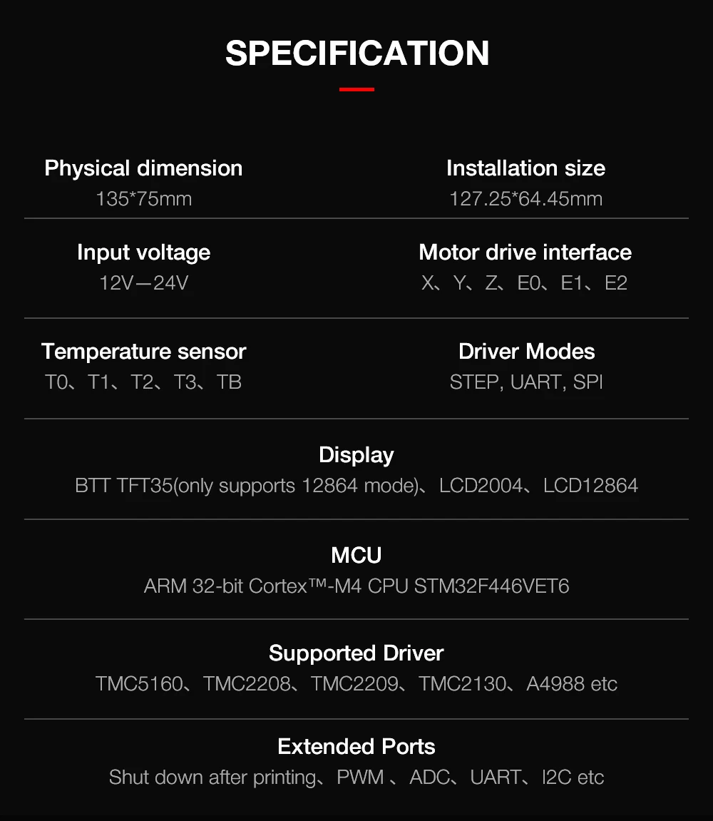 Fast shipping. Fast delivery. Neat & sturdy packing. BTT as always top goods & top service. And this might be the best bang-for-buck board out there, at least for the moment :-) Not really suited for novice users, as some degree of DIY & firmware fiddling skills are required to get the most out of it. Available technical documentation is not complete yet (missing detailed schematics), but can be guesstimated from the Aus3D (v1.0) sources.