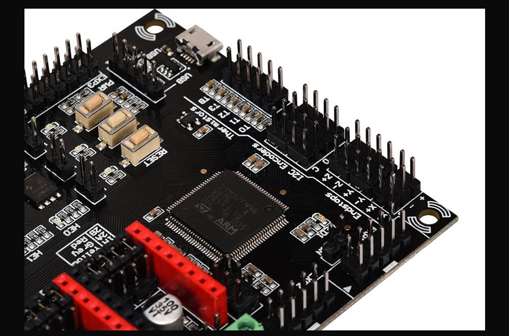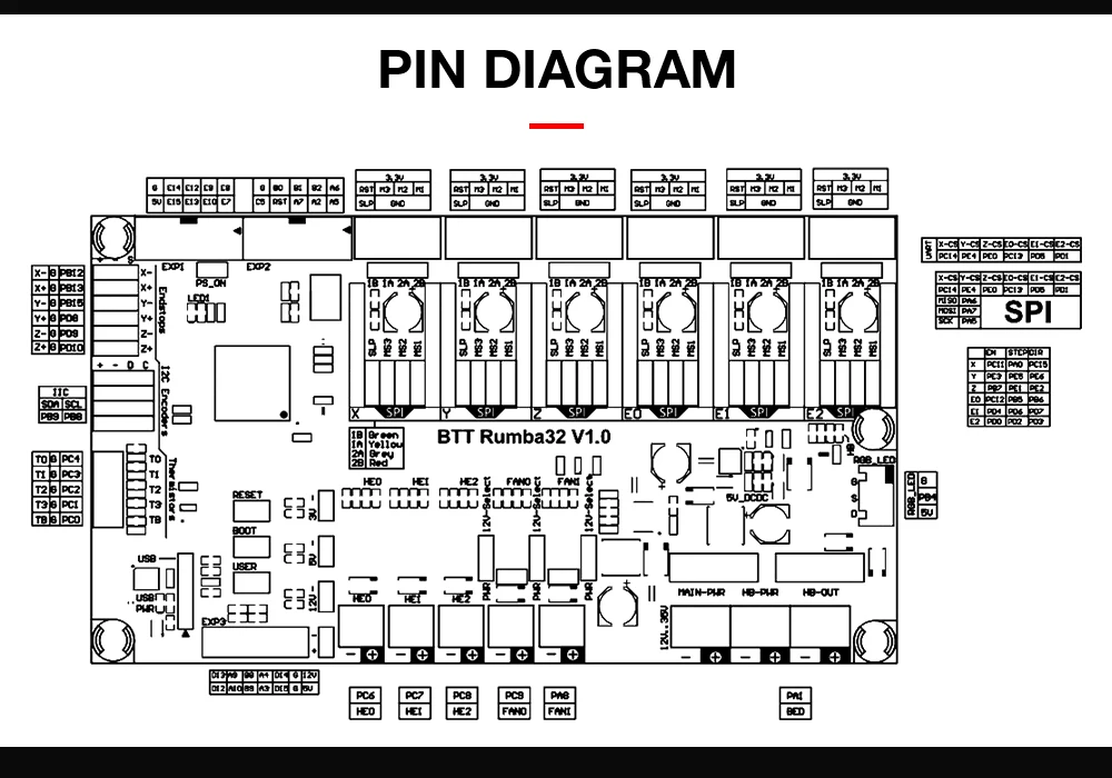 Документации очень мало. Приходится смотреть на оригинал и думать, что здесь поменяли. Нет порта для сервы. Нет разведённых на плате дорожек для diag пинов. Навешивайте провода как в 2017. Лучше бы взял MKS