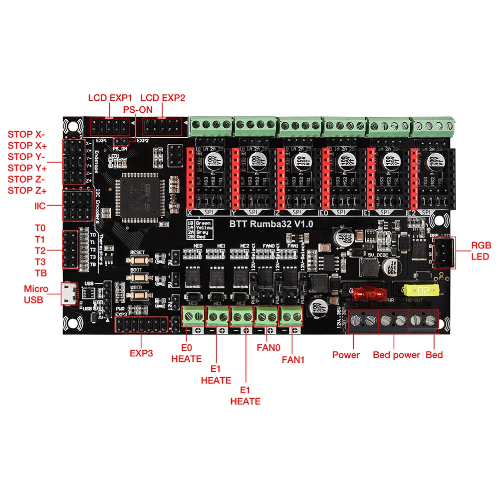 Плата управления BIGTREETECH BTT Rumba32 V1.0 32 бит, 180 МГц, 6 шт., TMC2209 TMC2208 TMC2130 TFT35 12864, детали для 3D-принтера