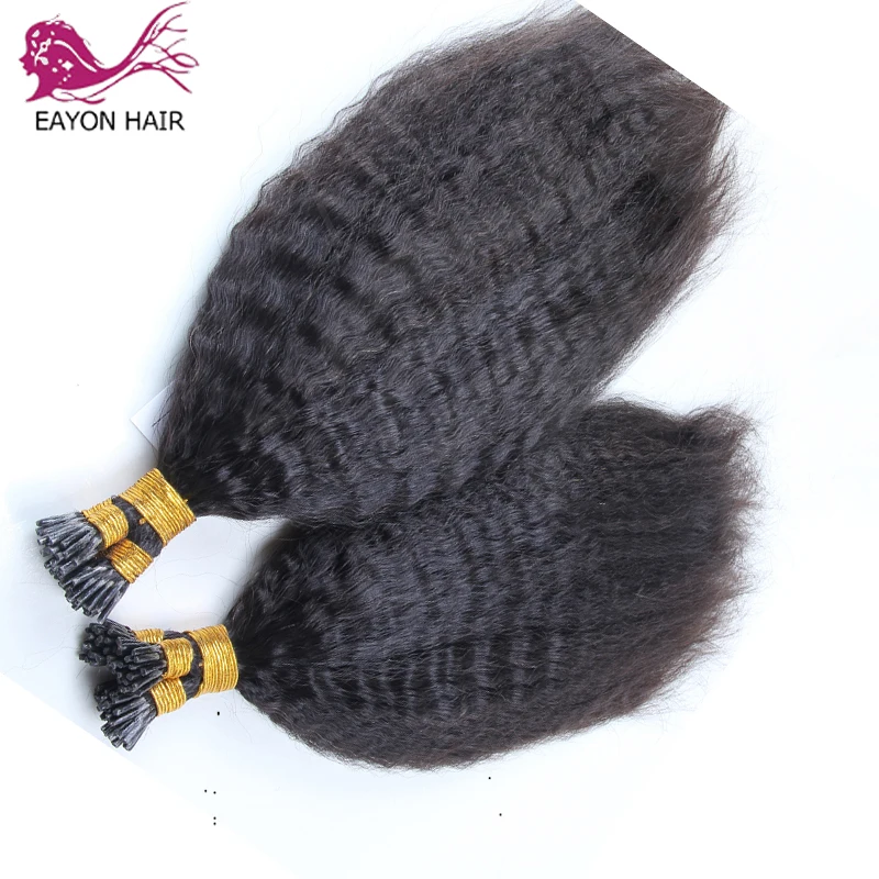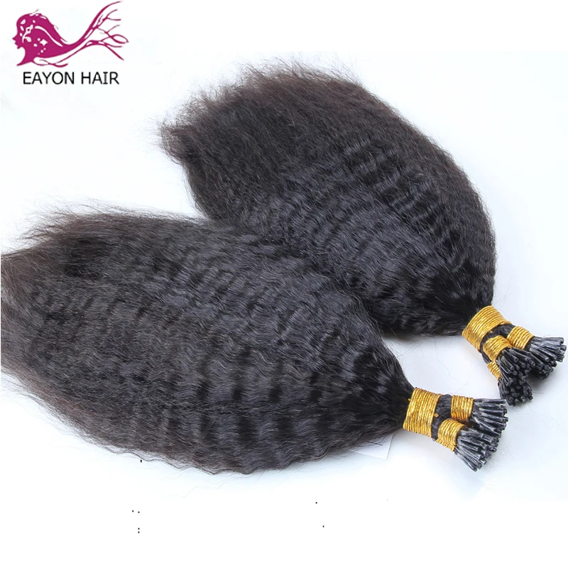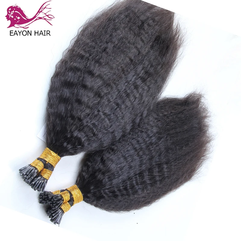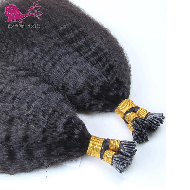 I Tip Наращивание человеческих волос афро кудрявые вьющиеся Предвар...