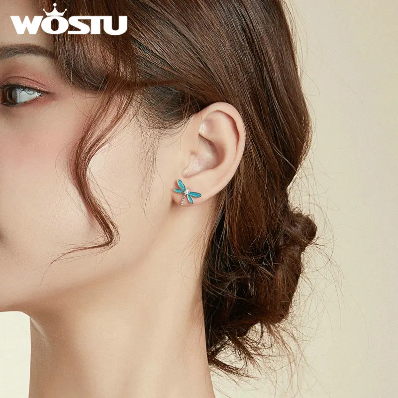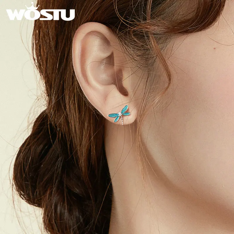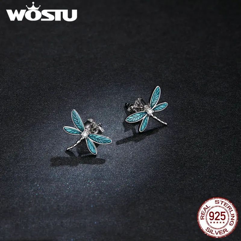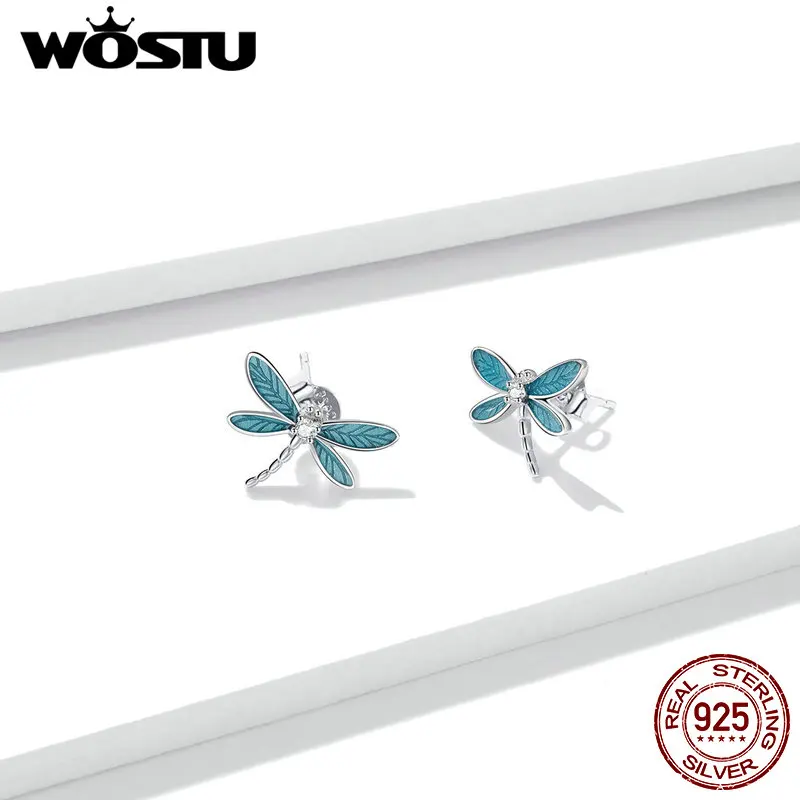 WOSTU 2020 поступления серьги из стерлингового серебра 925 пробы маленькие серьги-гвоздики маленькая Стрекоза для женщин хорошее ювелирное изделие подарок FNE455