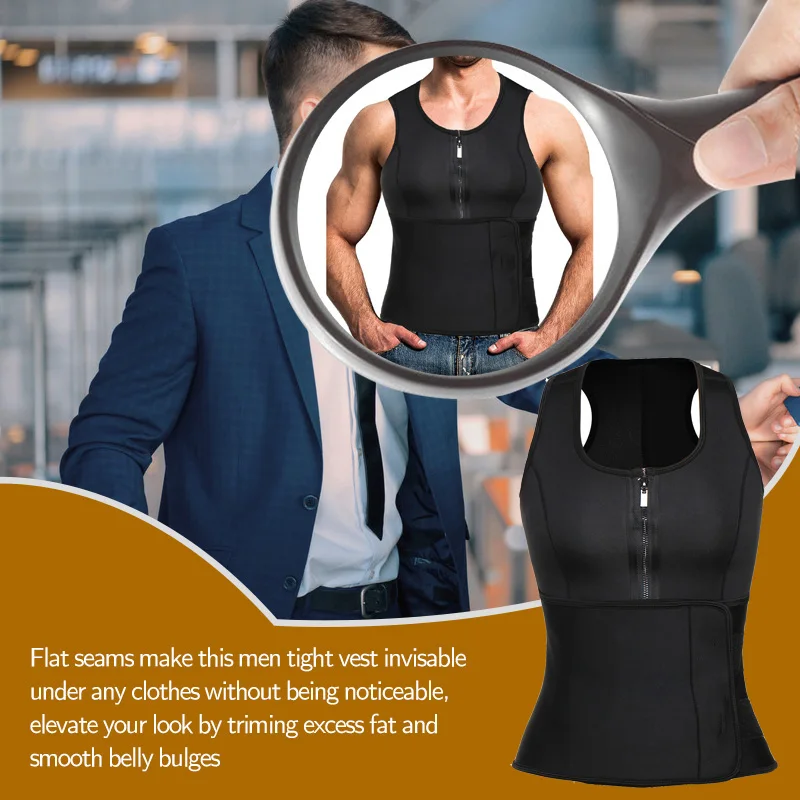 Мужской тренировочный корректор талии, жилет на молнии для сжигания жира, потеря веса, Неопреновая сауна, тренировочный жилет, майка, модная корректирующая одежда