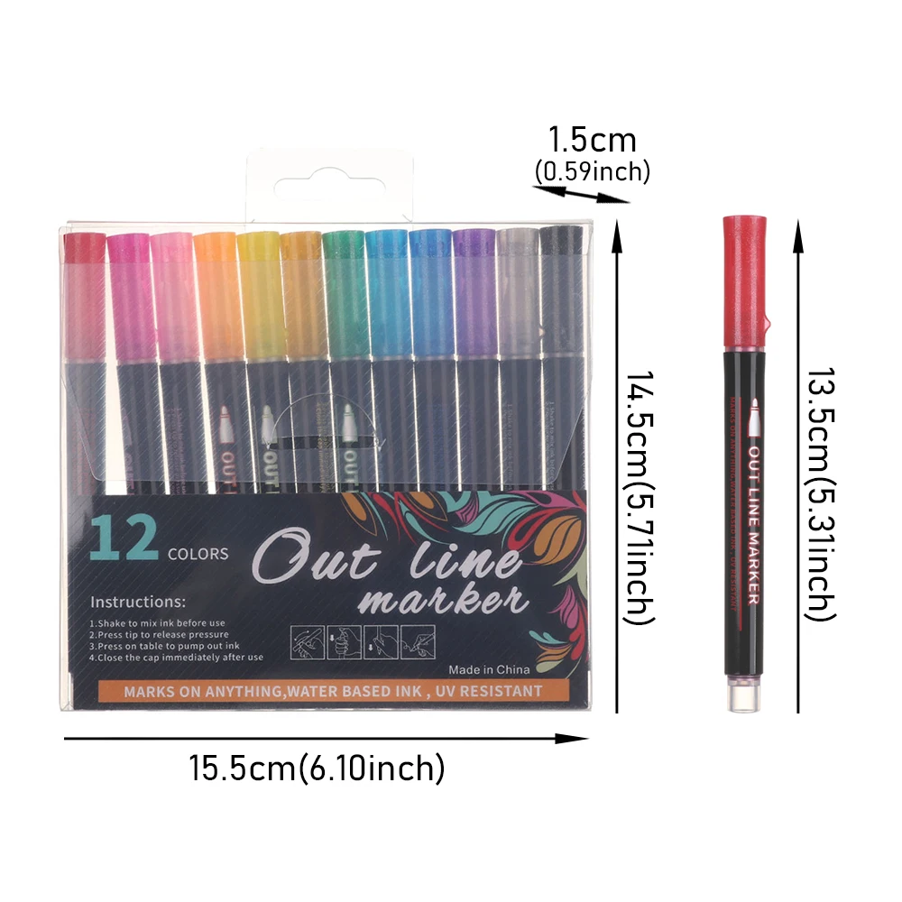 1812 шт.компл. контур Маркеры цвета "металлик" креативные двойные линии Волшебные мерцающие маркеры для рисования маркеры авторучка школьные художественные принадлежности