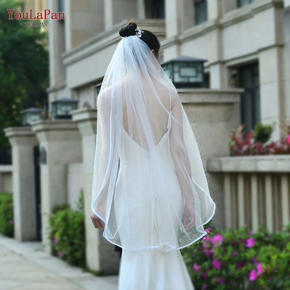 Свадебная фата YouLaPan V21 белого цвета слоновой кости, фата на плечо с гребнем, Турецкая вуаль, свадебная фата с ленточным краем, Фата для платья невесты
