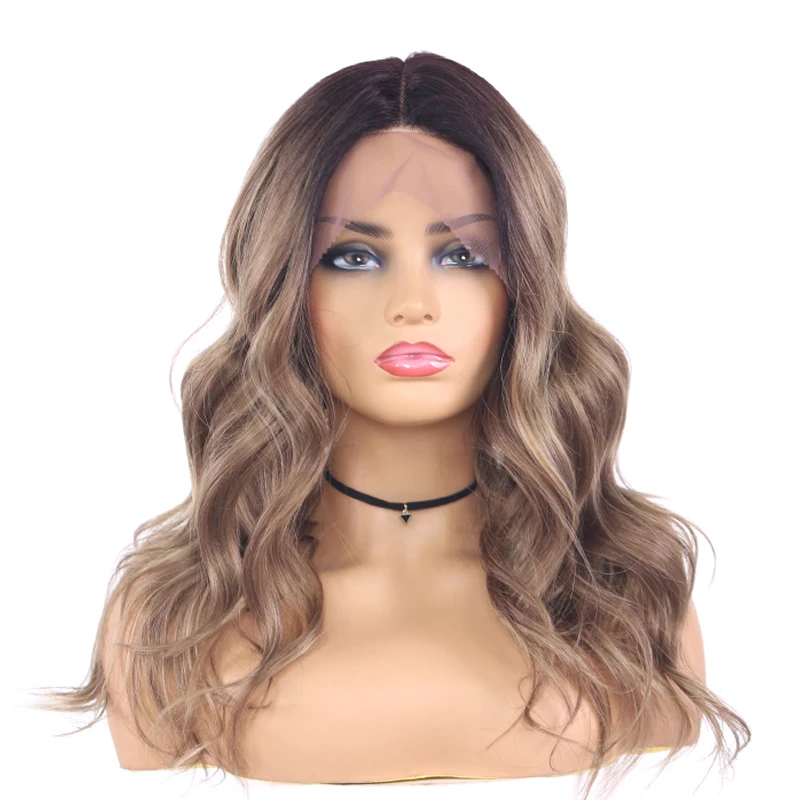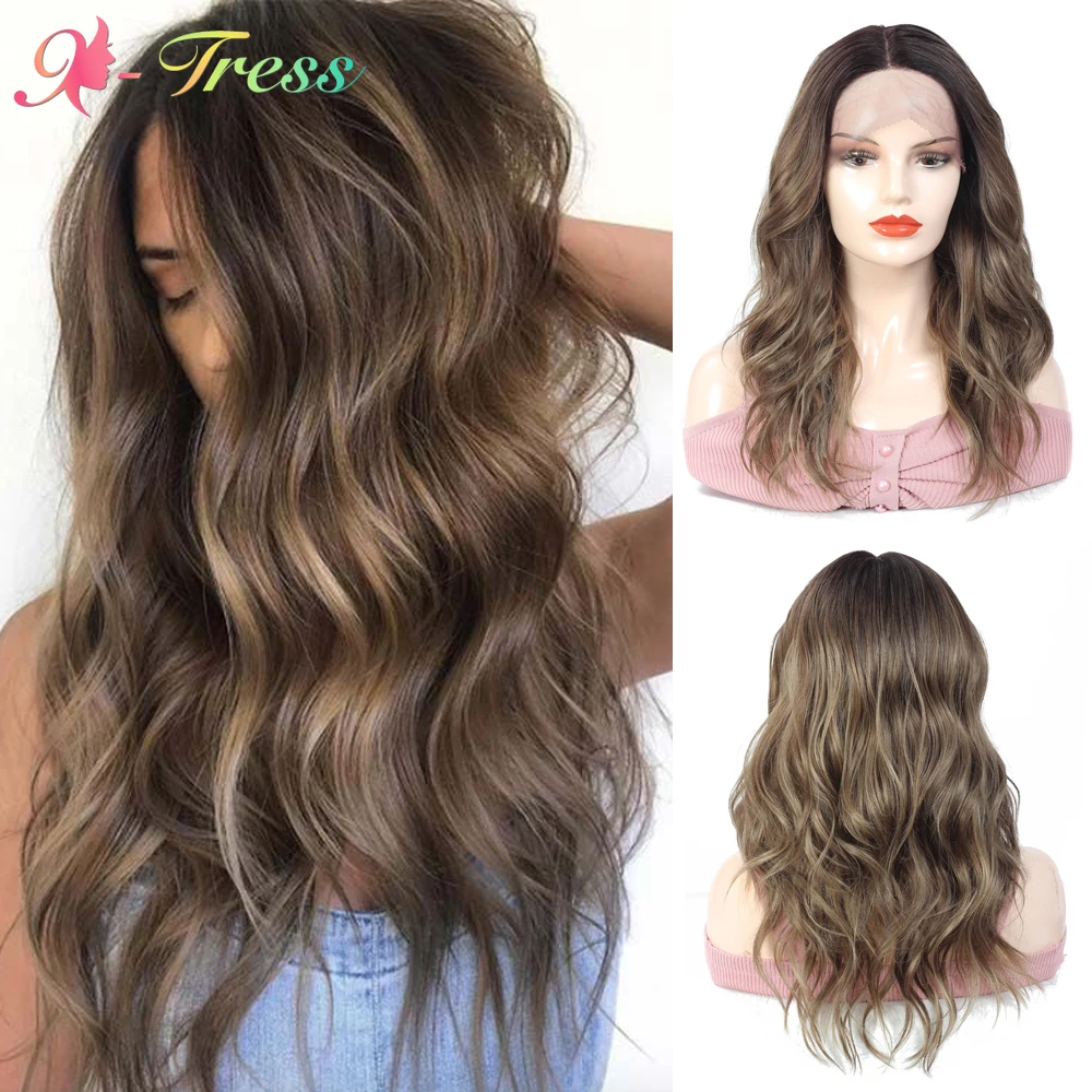 Женский синтетический парик с эффектом омбре, коричневый, светлый, длинный, с натуральными волнистыми волосами средней длины, термостойкий