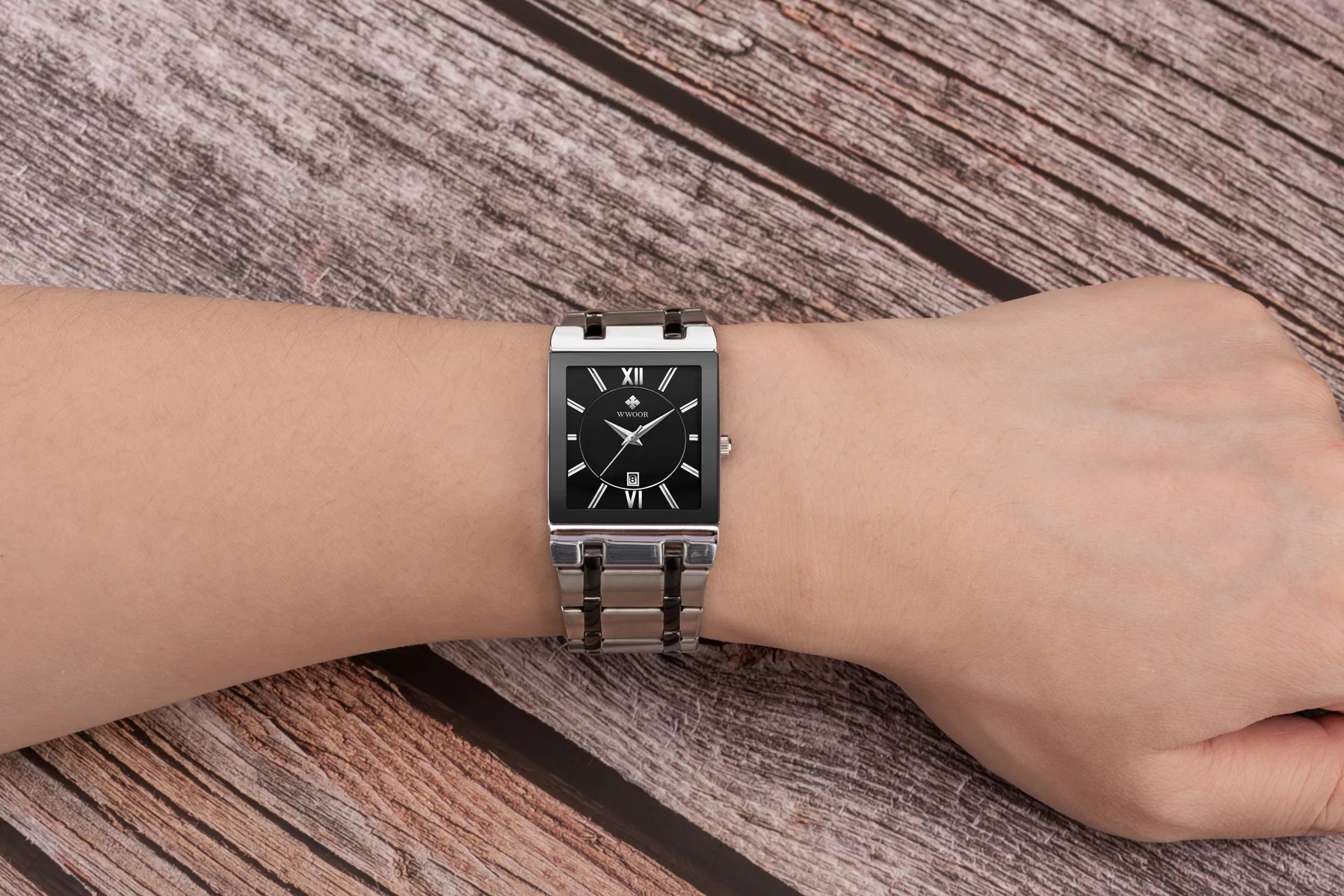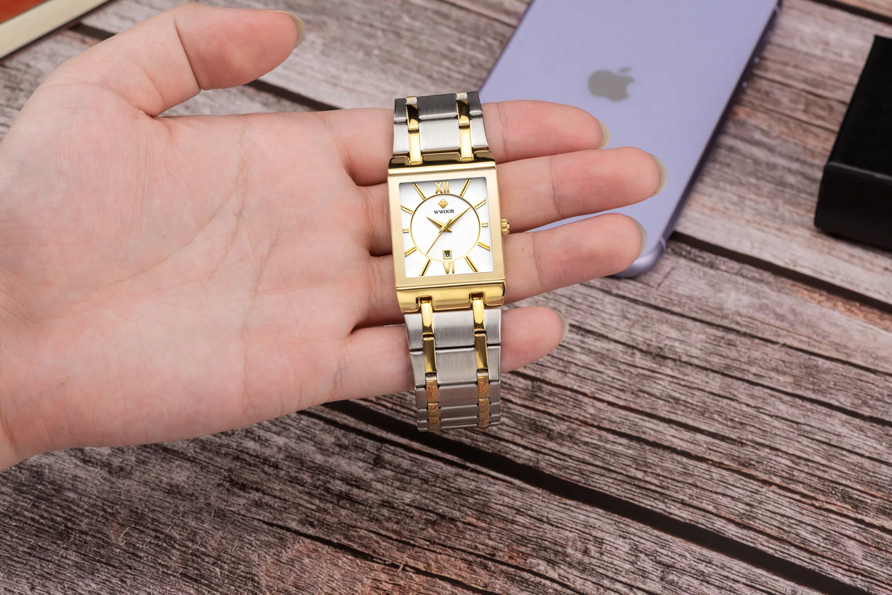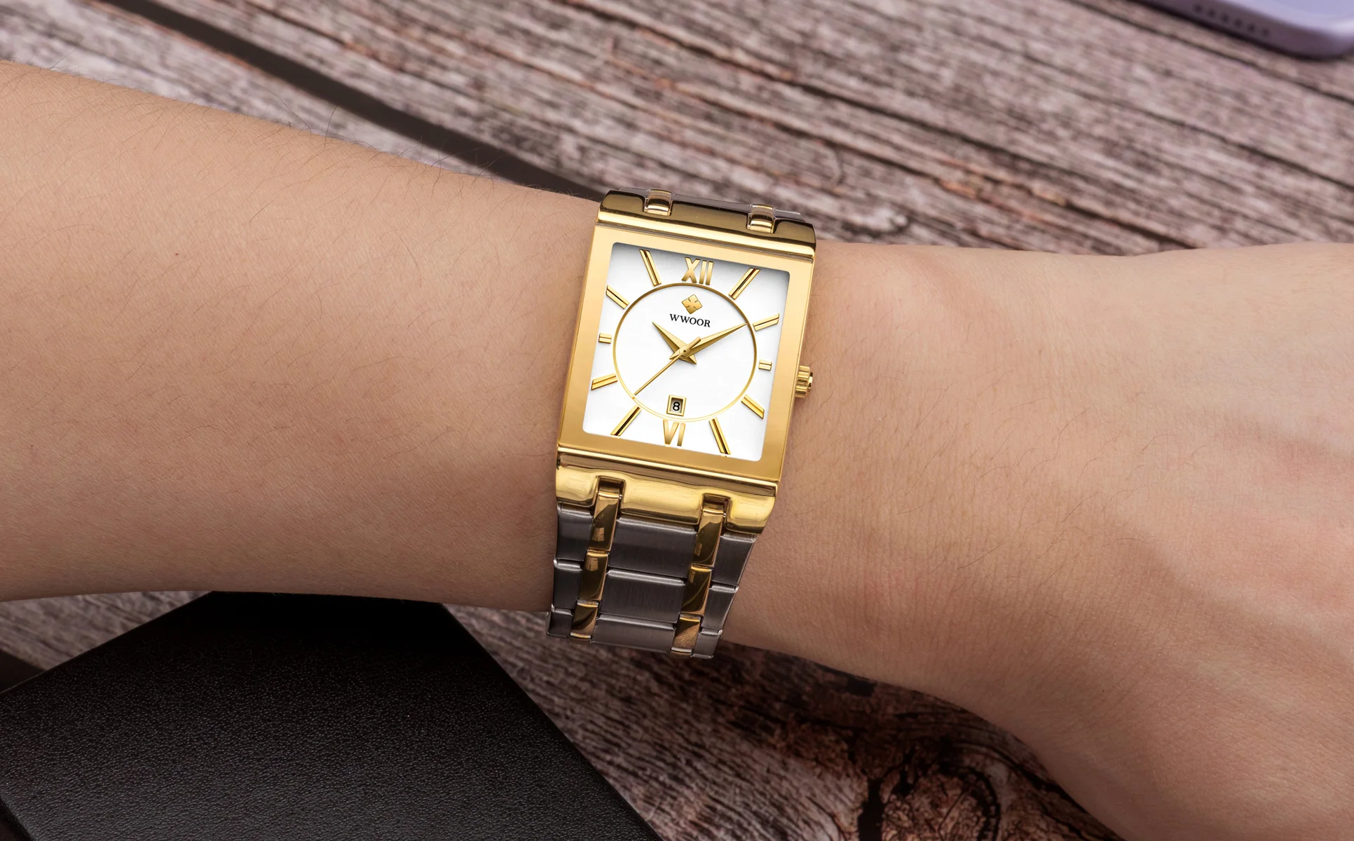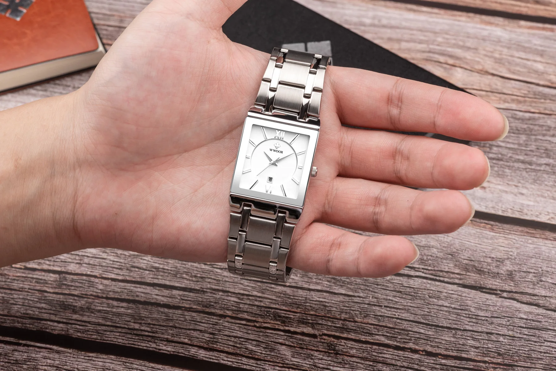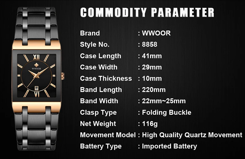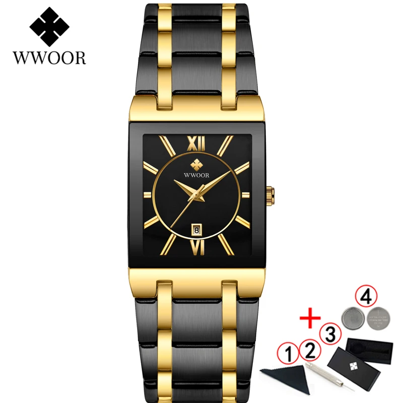 1x100% WWOOR Брендовые Часы 1 x инструмент для регулировки ремешка часов 1 x оригинальная коробка 1 запасная батарея 1 x чистая ткань