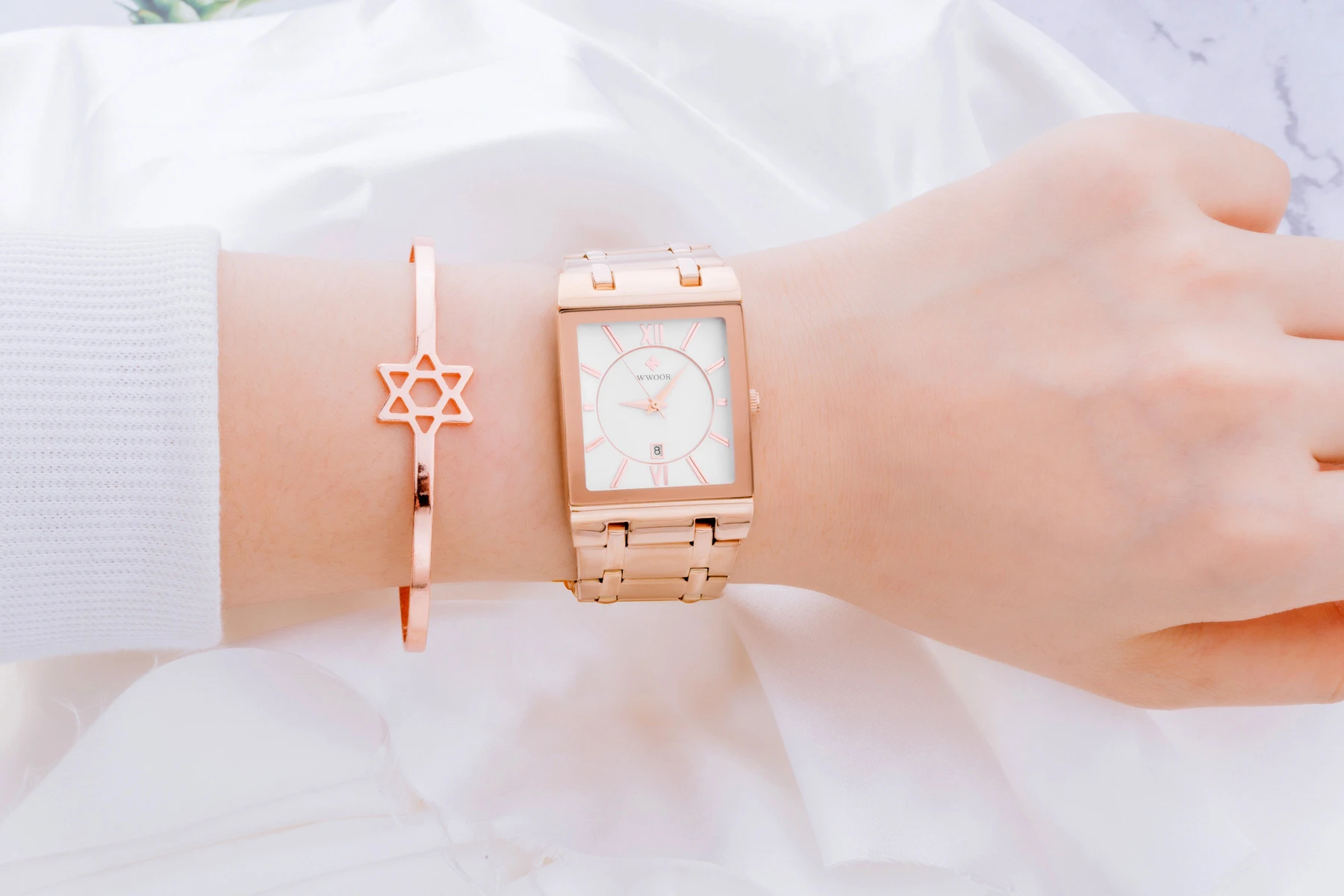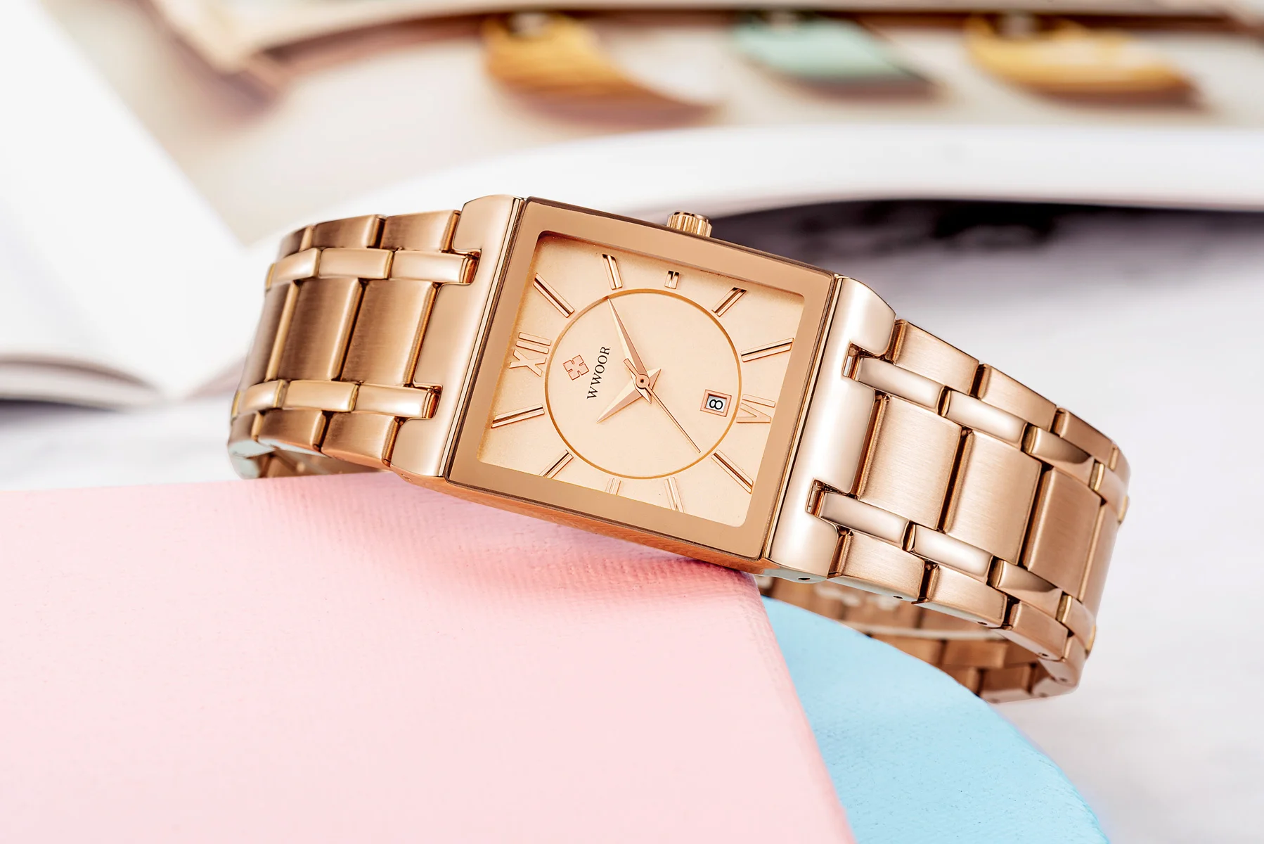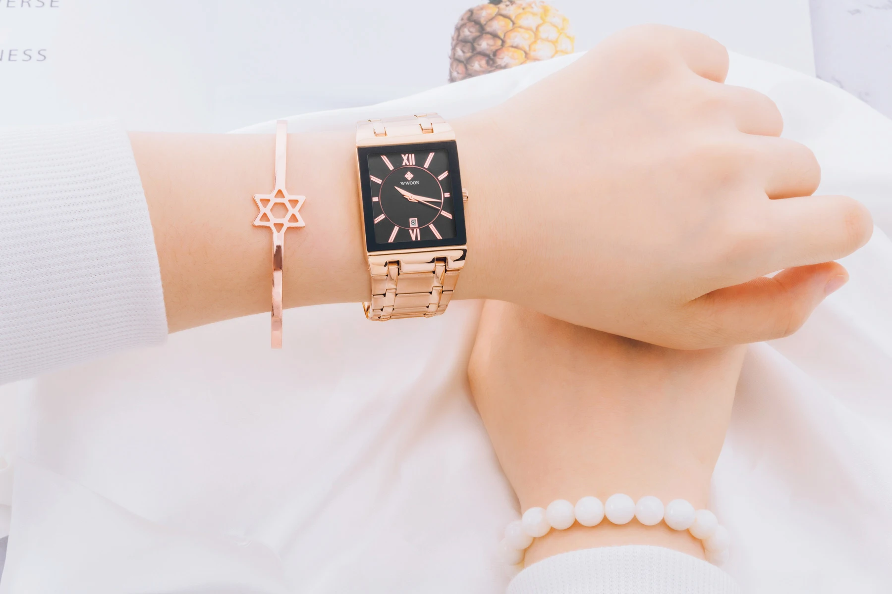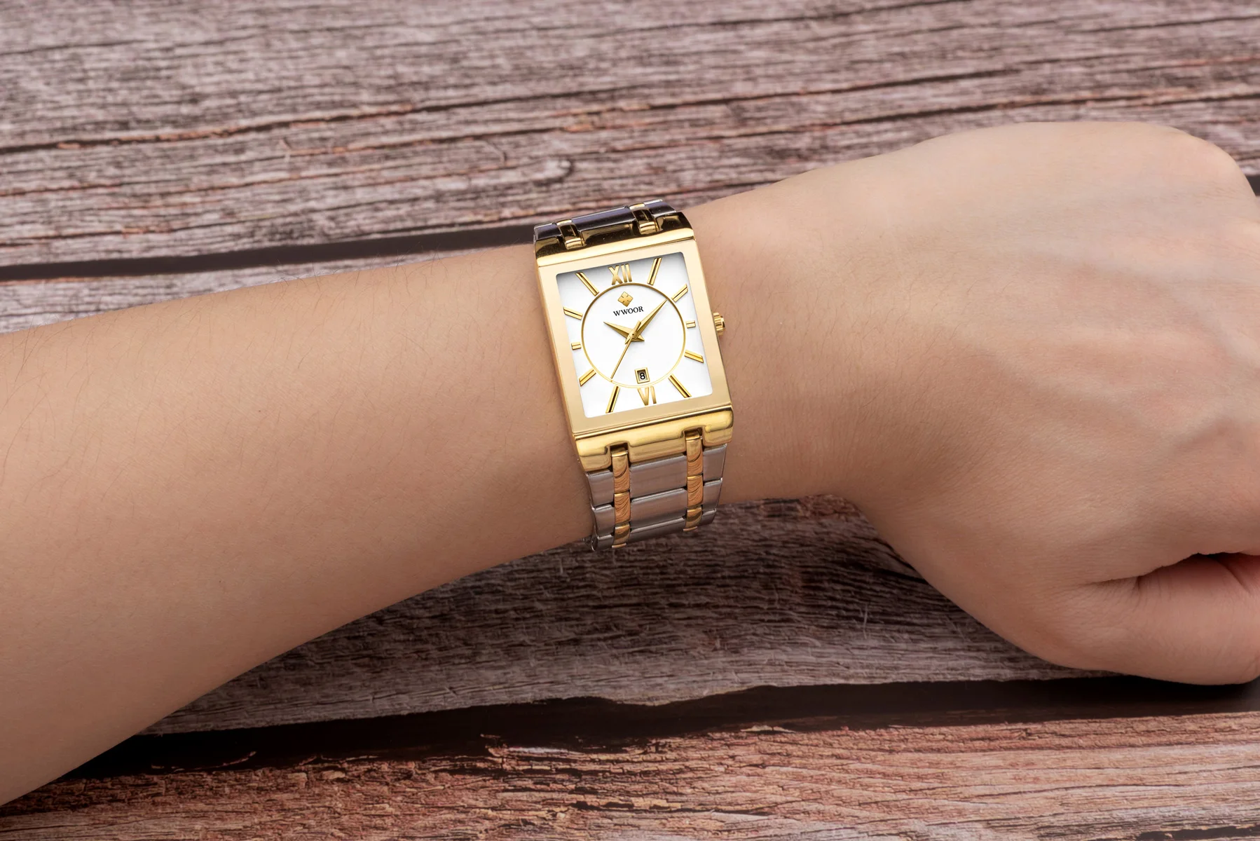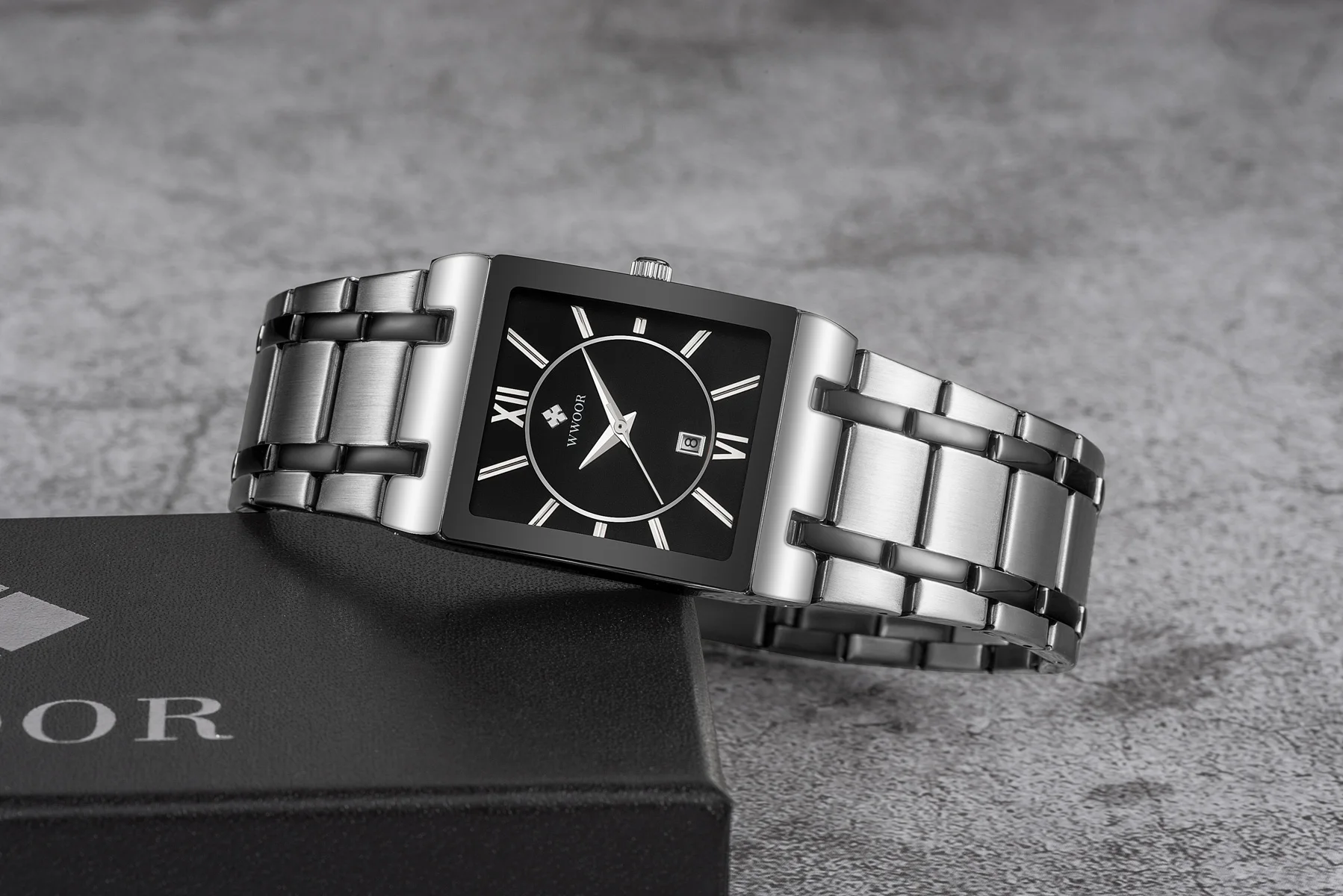 1x100% WWOOR Брендовые Часы 1 x инструмент для регулировки ремешка часов 1 x оригинальная коробка 1 запасная батарея 1 x чистая ткань