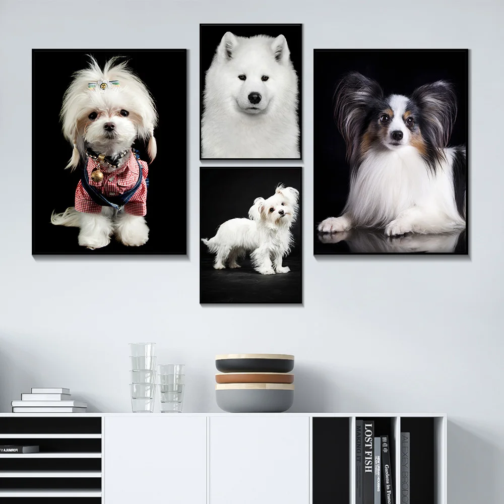 Милые животные собаки белый щенок Холст Картина Йоркширский терьер плакаты и принты настенные художественные картинки для декора гостиной