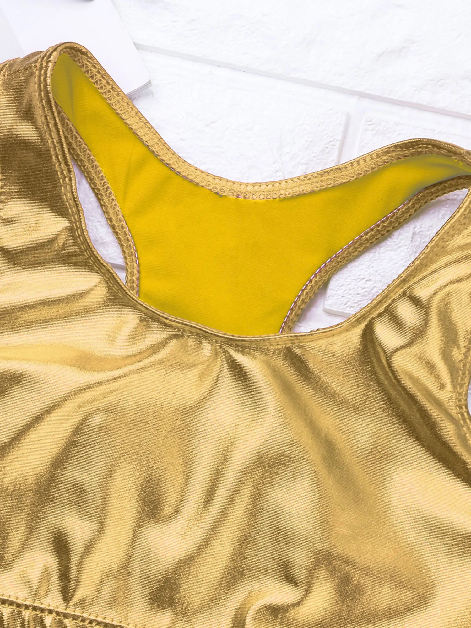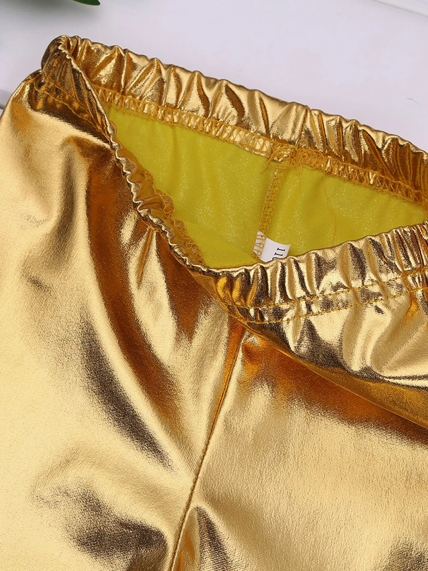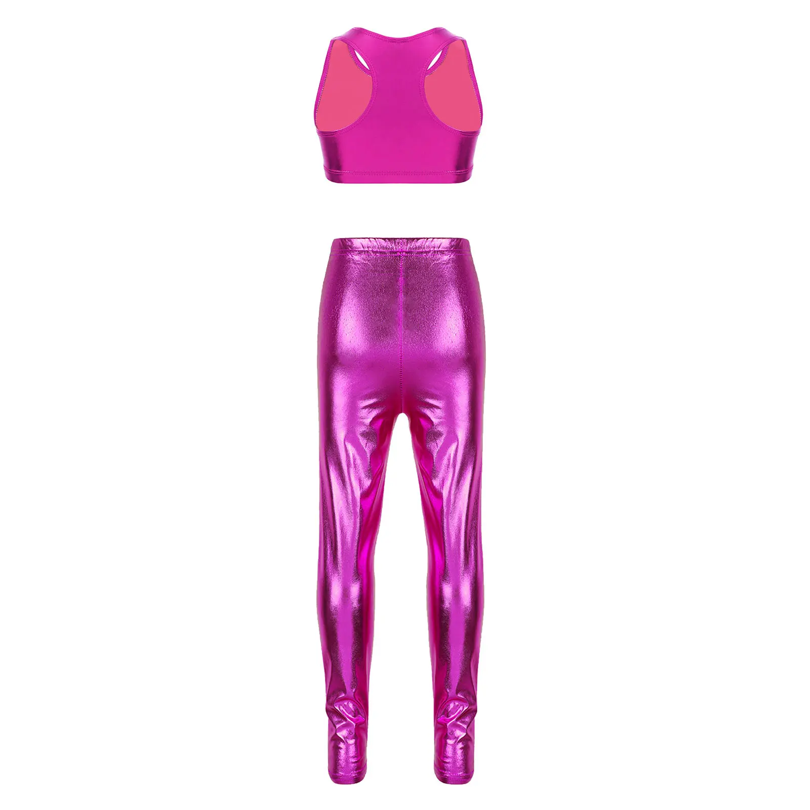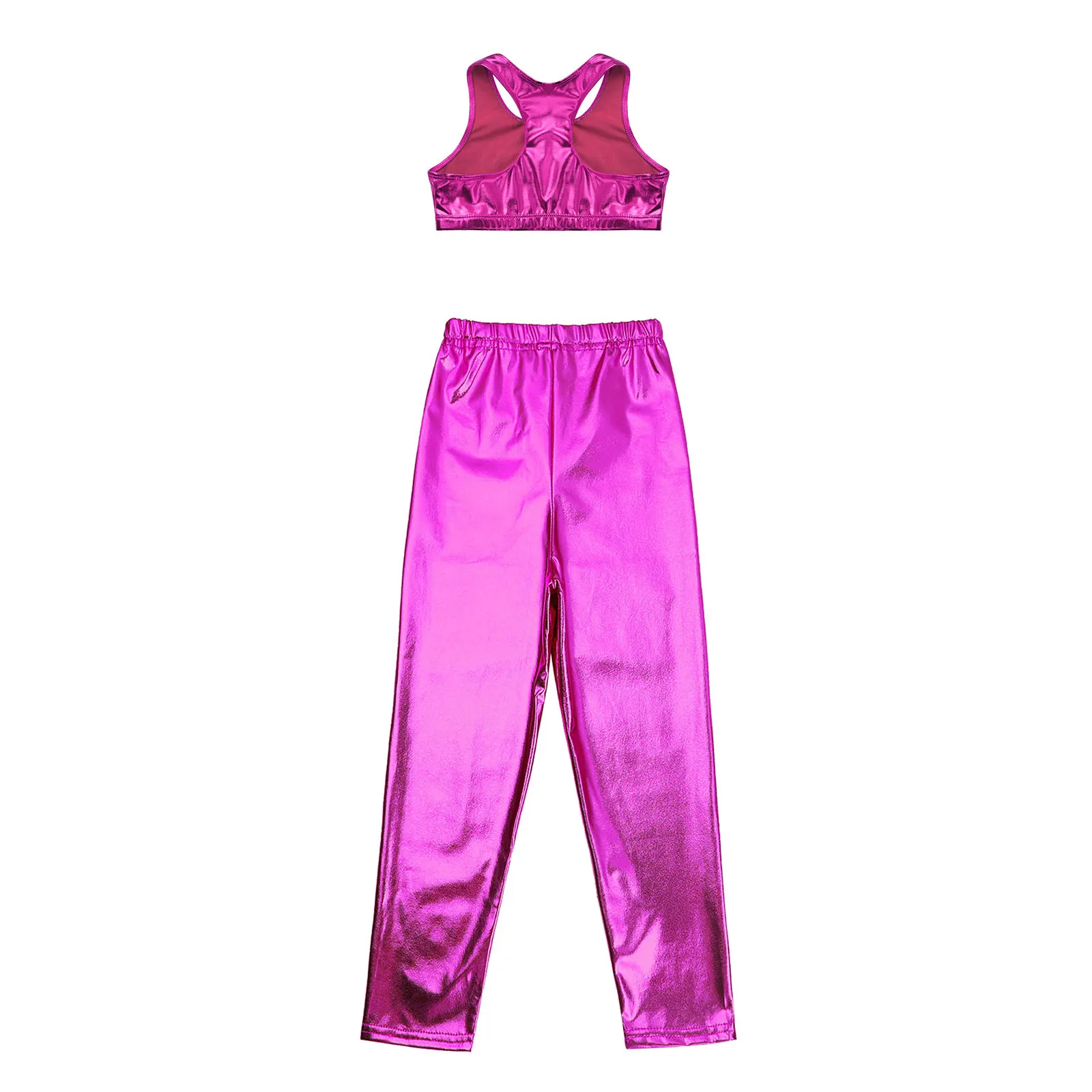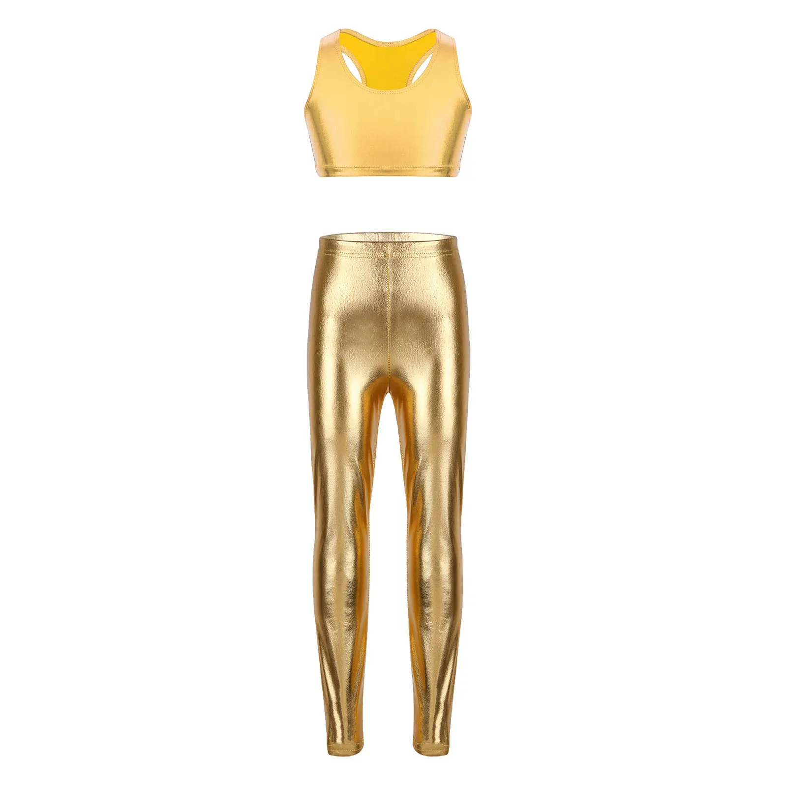 # M-2XL; Блестящий металлический укороченный топ без рукавов для девочек; Обтягивающие штаны; Леггинсы для балета; Танцевальная одежда для сцены
