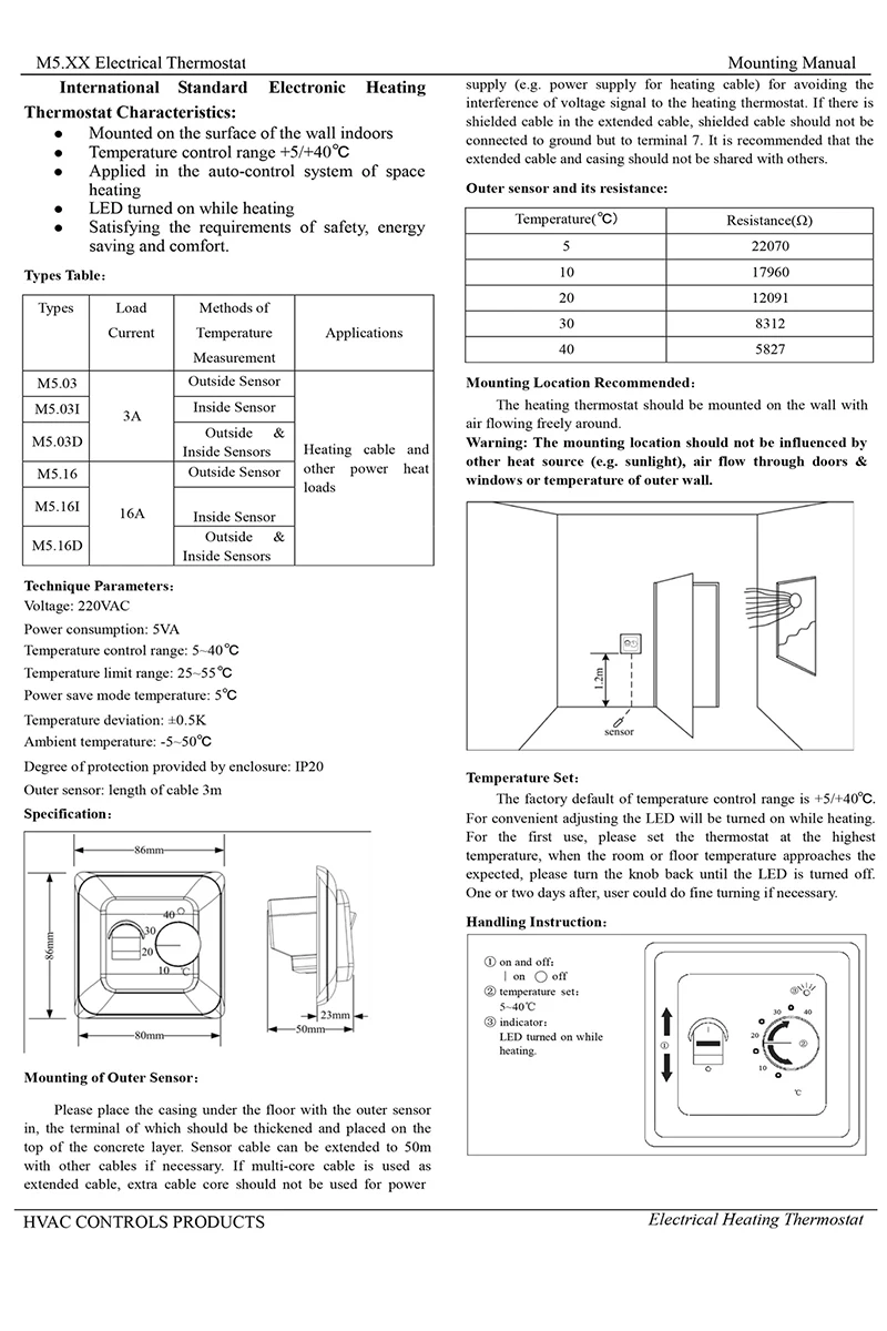 Тип управления: температура Режим управления: механический регулятор температуры Предмет измерения: Напольное отопление/комнатное Отопление Диапазон температур: 5 ~ 40 ℃ (℃) Температура погрешность измерений: ± 0,5 K (℃) Размер отверстия: 50*50 (мм) Тип установки: Встроенный Выходной сигнал: 16 (мА) Рабочее напряжение: 230 (в) Размеры: 86*90 (мм) Напряжение: 220 В переменного тока Потребляемая мощность: 5ва Предельный Диапазон температур: 25 ~ 55 ℃ Энергосберегающая температура: 5 ℃ Температура переключатель отклонение: ± 0,5 K Температура окружающей среды: -5 ~ 50 ℃ Защита корпуса: IP20 Внешний датчик: длина свинца 3 м