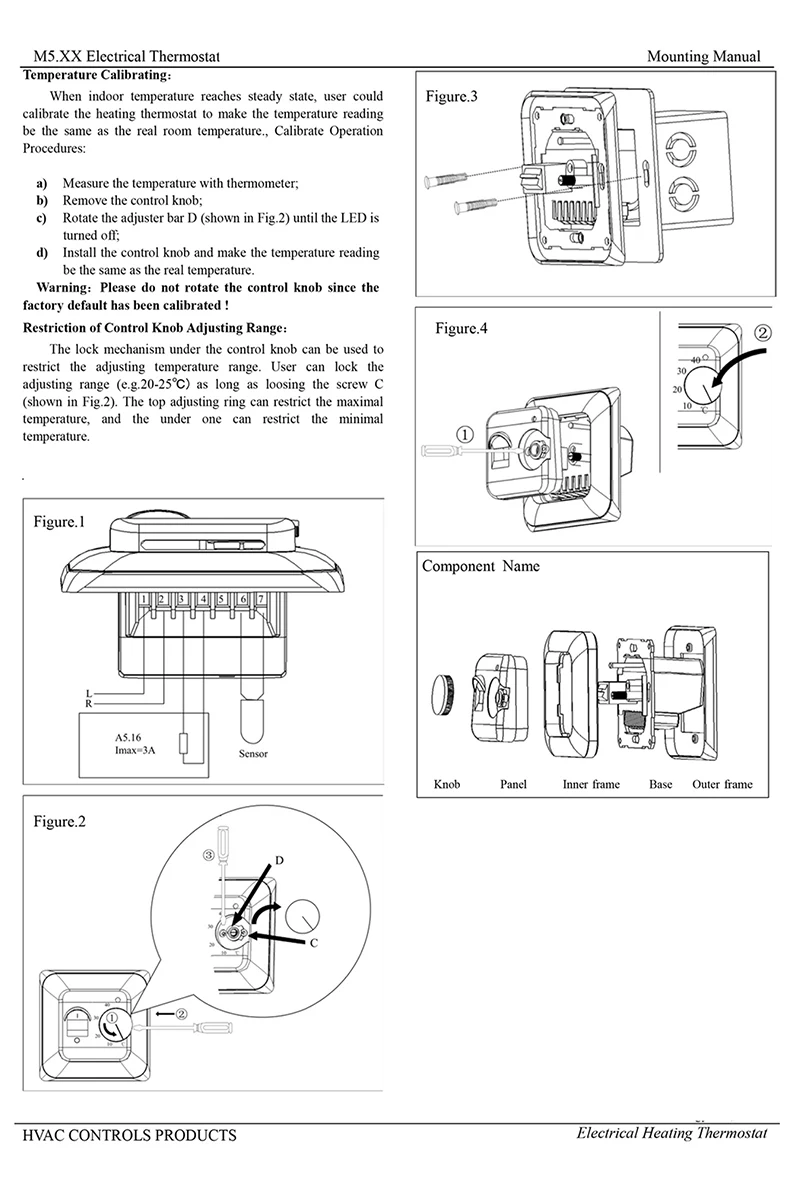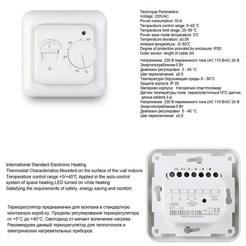 Термостат для теплого пола 16 А 220 в 5-40 Цельсия механический регулятор температуры