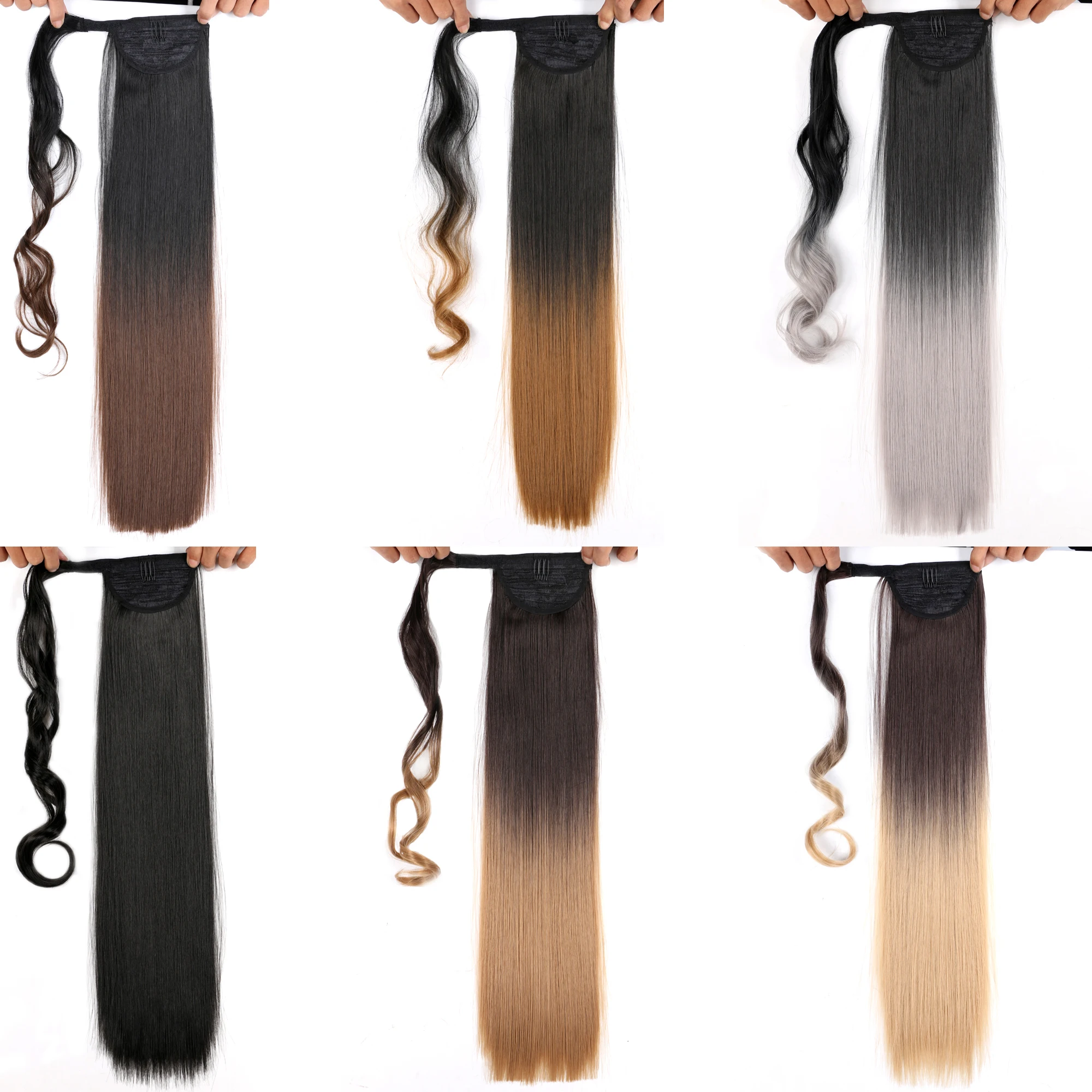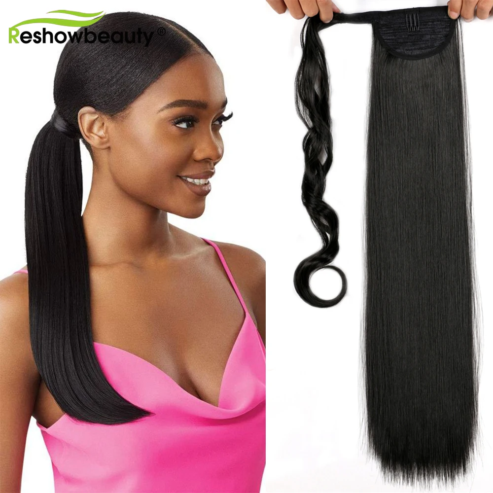 Синтетические волосы для наращивания прямой конский хвост 22 дюйма чистыйцвет Омбре Термостойкое волокно Reshowbeauty