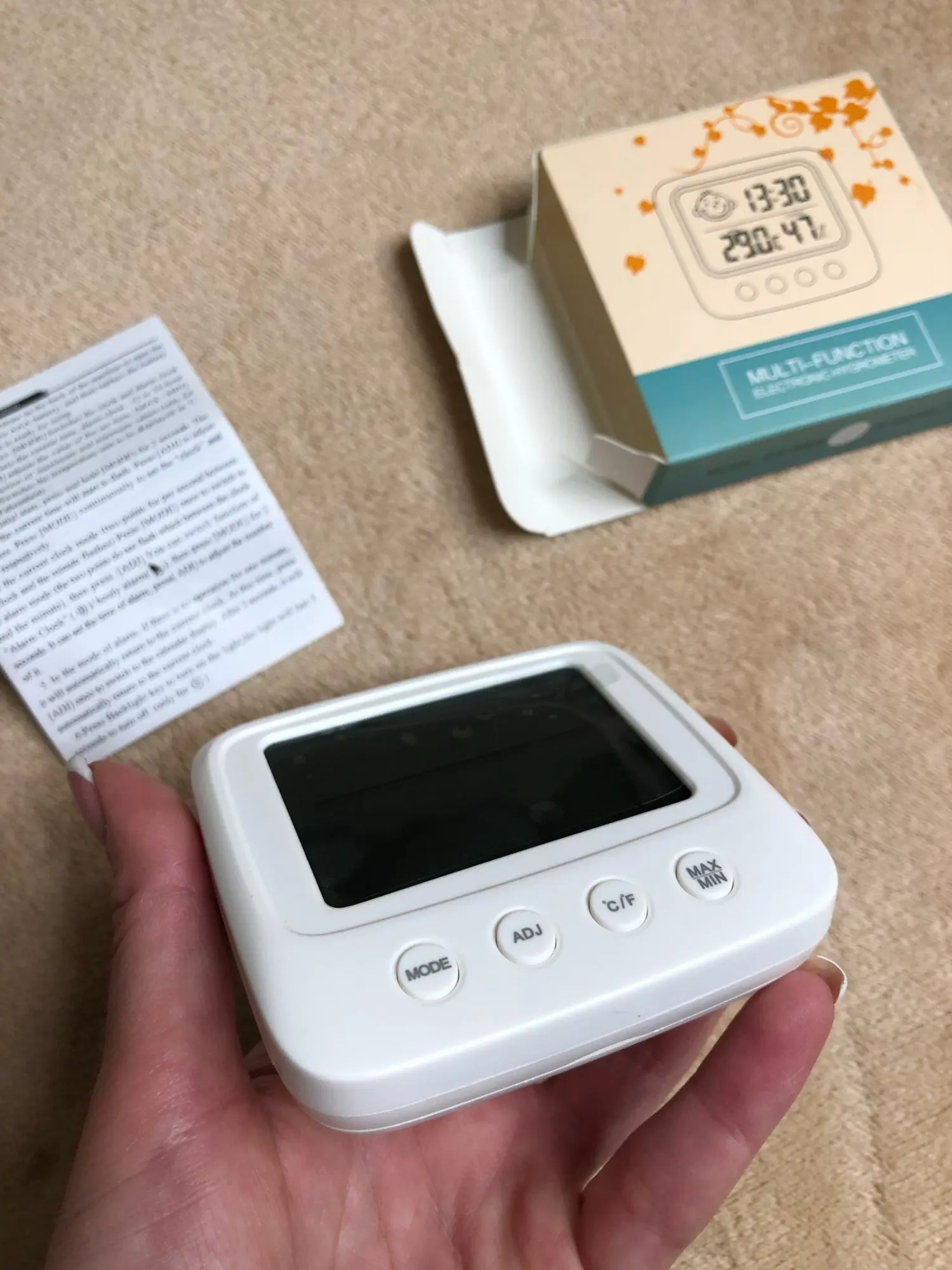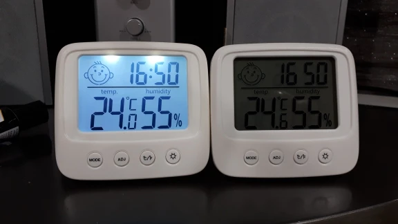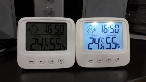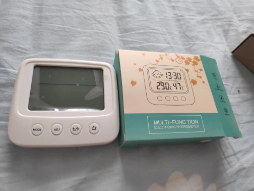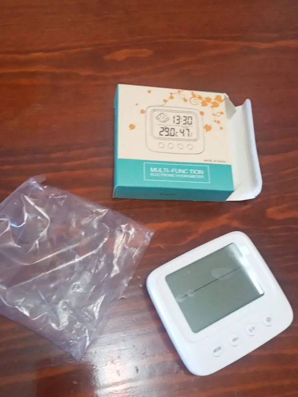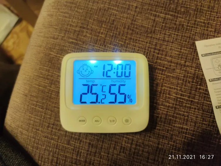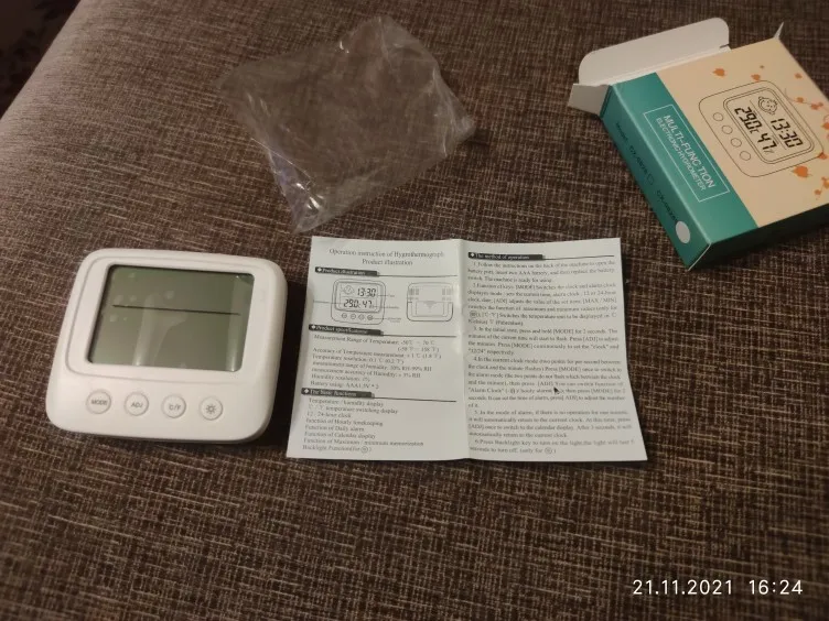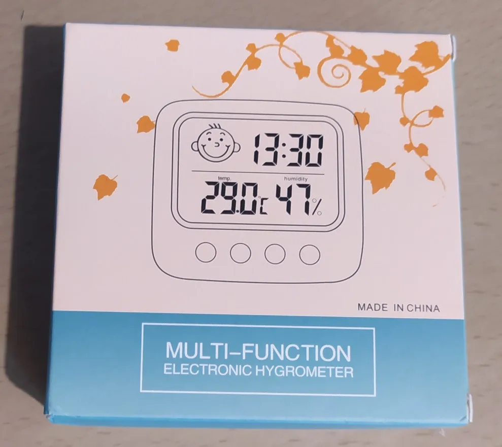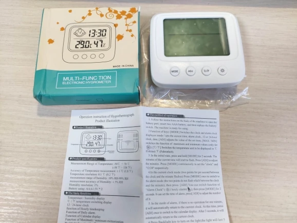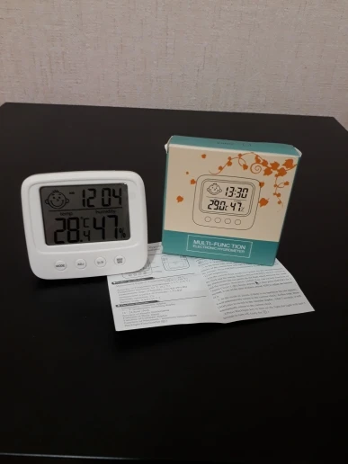 Один из лучших товаров, приобретенных мною за последнее время. Заказала 11.11, пришло 14.12. Упаковано в индивидуальную коробку, это огромный плюс. Давно искала себе устройство компактного размера, которое будет вмещать в себе время, температуру и влажность. Это очень удобное и легкое устройство, благодаря подставке сзади, его можно поставить на любую ровную поверхность в доме. Сделано из пластика, но выглядит отлично. Я взяла вариант с подсветкой: ночью эта подсветка отлично работает, видно все супер. Очень компактный, много места не занимает. Температуру измеряет +/- правильно, так же и влажность. Очень нужная вещь. Единственный весомый минус: к сожалению, в инструкции недостаточно понятно описано как настроить время (инструкция на английском и китайском языке). Мне пришлось долго разбираться, но в конечном счете, мне все таки удалось настроить устройство. За такие деньги определенно стоит брать.